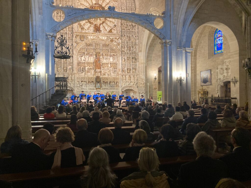 El Orfeón Calagurritano Pedro Gutiérrez ha viajado a Burgos para cantar en un doble concierto con la Coral San Esteban de la ciudad burgalesa. El concierto, que tuvo lugar en la tarde del pasado sábado, tuvo como telón del fondo el impresionante retablo de alabastro de la iglesia de San Nicolás de Bari de Burgos.