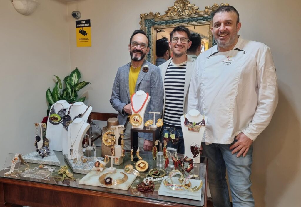 Esta mañana se ha presentado una nueva colección de joyas realizadas con verduras diseñadas por el joyero Jesús Ángel Ruiz y Esteban Alegría, cocinero de La Comedia, algunas de las cuales desfilarán mañana en la X Pasarela de la Verdura.