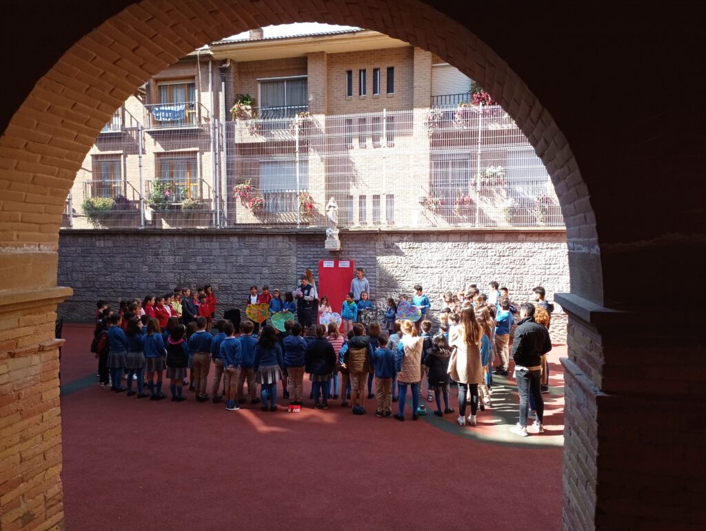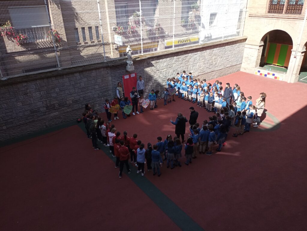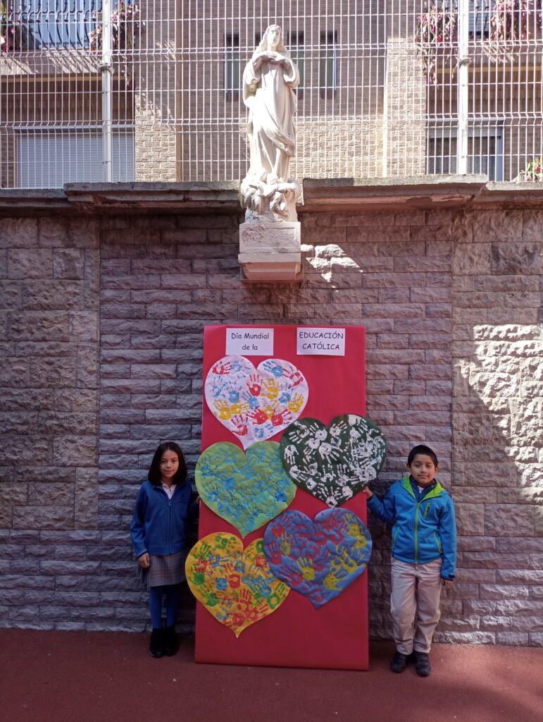 En el Día Mundial de la Educación Católica con este gesto, poniendo nuestras manos en ese corazón, los alumnos/as de 1º a 4º de E.P. de nuestro colegio queremos visibilizar estas situaciones, presentar a las personas que conviven con realidades tan duras y, sobre todo, agradecer a tanta gente de fe que se desvive con una entrega generosa y radical, apuntando siempre a la justicia, frente al sufrimiento; a la solidaridad, frente a la desigualdad; y a la esperanza, frente al pánico o al miedo.