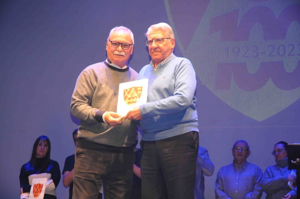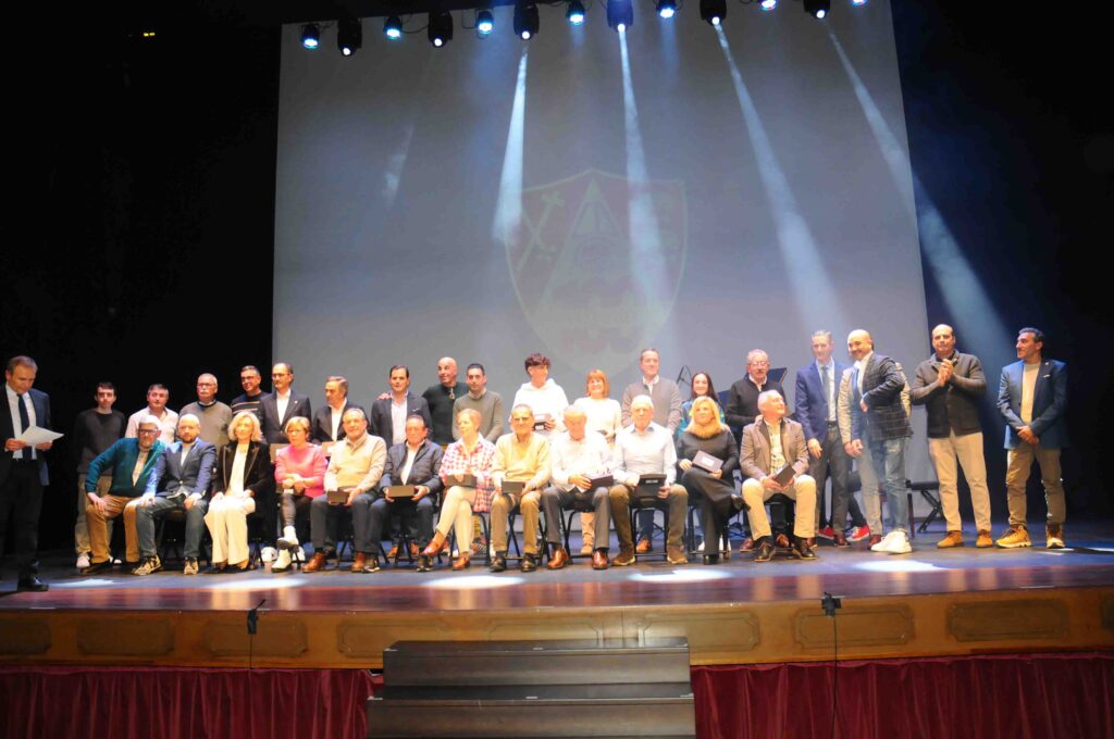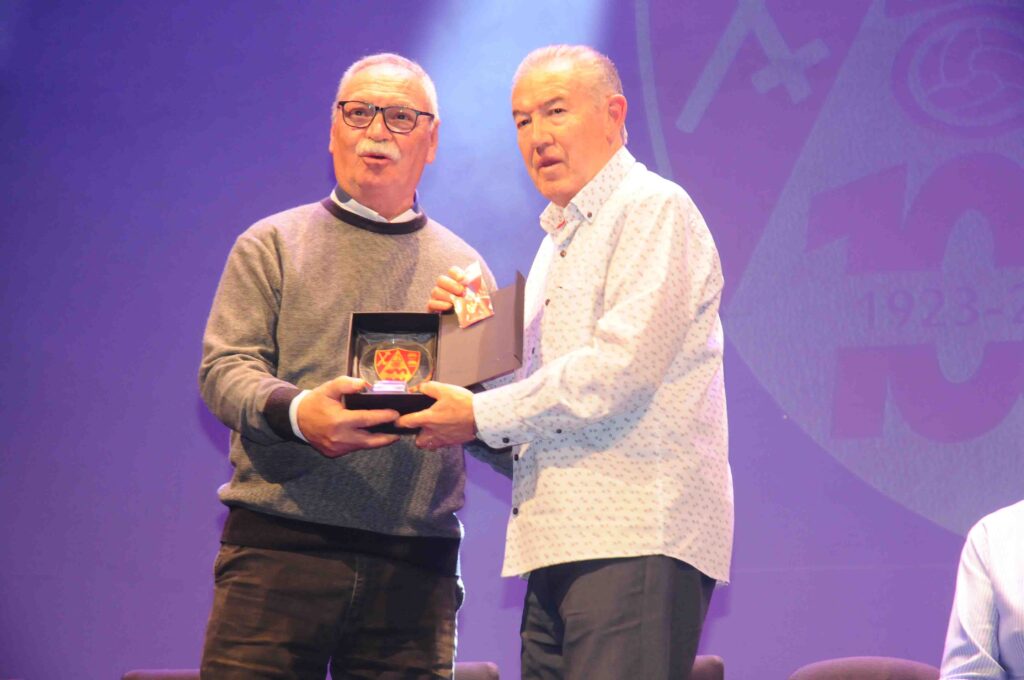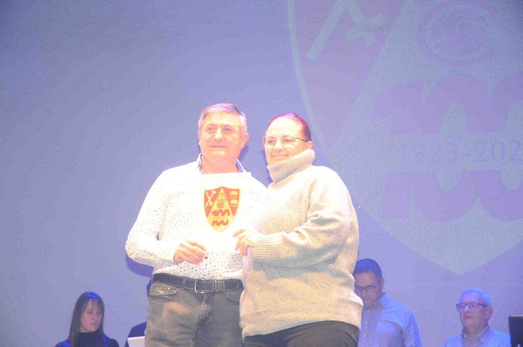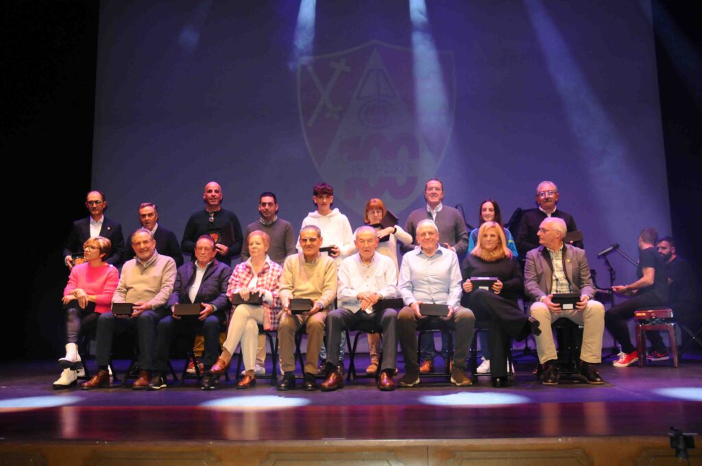 En el acto, que fue presentado por José Manuel León Meliá y con música de Noche Entre Amigos, se destacaron a las personas y asociaciones que han colaborado durante este año 2023 con el Comité del Centenario en la preparación de diversos actos, y como colofón, se rendió homenaje a los 22 presidentes que han pasado por el club rojillo.