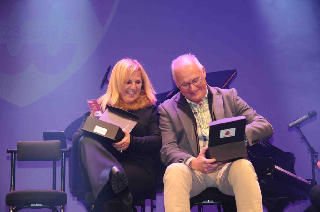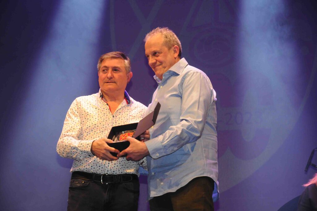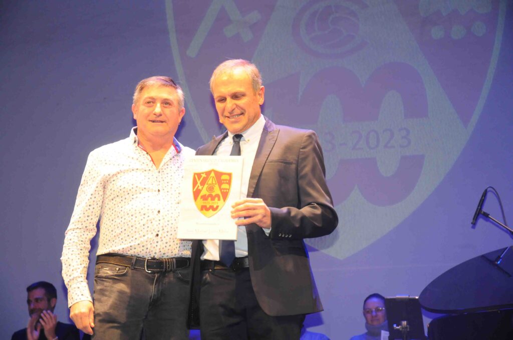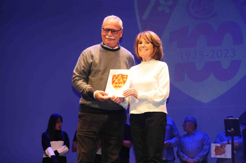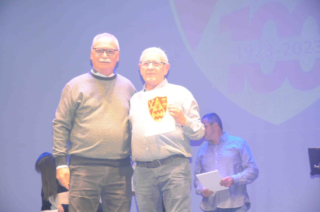 En el acto, que fue presentado por José Manuel León Meliá y con música de Noche Entre Amigos, se destacaron a las personas y asociaciones que han colaborado durante este año 2023 con el Comité del Centenario en la preparación de diversos actos, y como colofón, se rendió homenaje a los 22 presidentes que han pasado por el club rojillo.