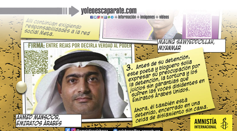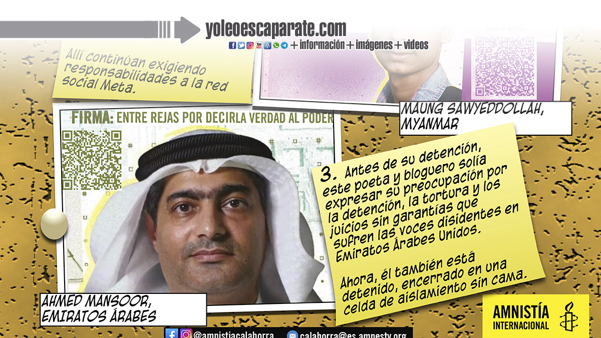 En ella se abordarán los casos de tres personas que en distintas partes del mundo ven vulnerados sus derechos fundamentales. Todas forman parte de la campaña anual «Escribe por los Derechos» y son la activista Justyna Wydrzynska (Polonia), el joven rohinyá Maung Sawyeddollah (Myanmar) y el bloguero y defensor de los derechos humanos Ahmed Mansoor (Emiratos Árabes Unidos).