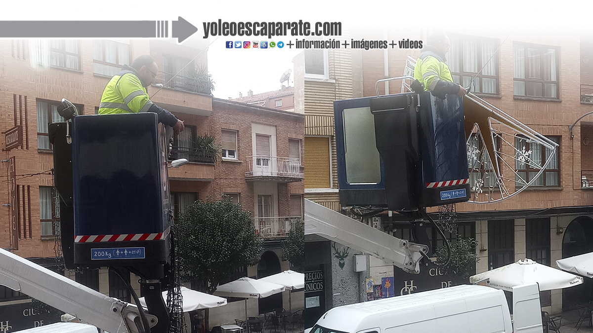 Los operarios de mantenimiento del Ayuntamiento de Calahorra procedían esta mañana a descolgar las luces que han ambientado la Navidad de la cuidad durantes estos pasados días.