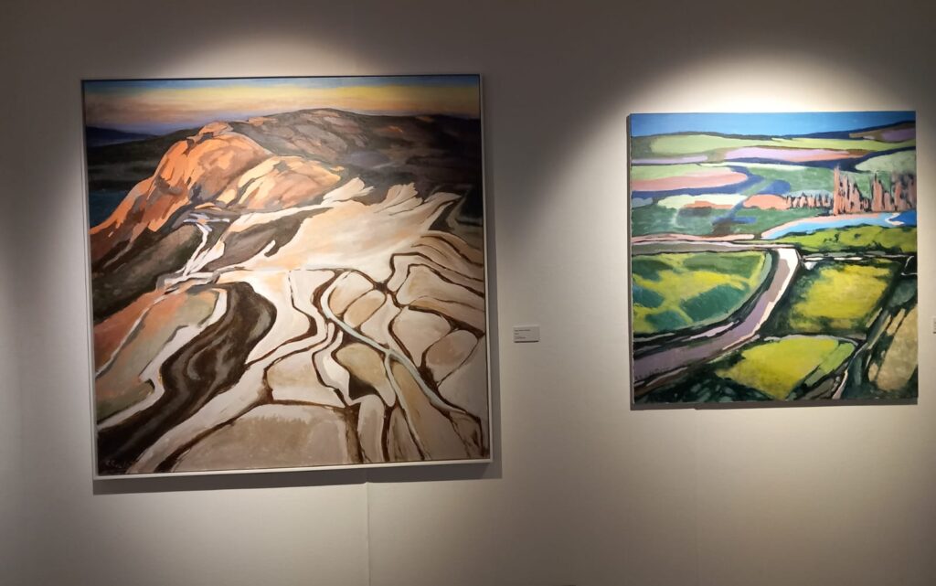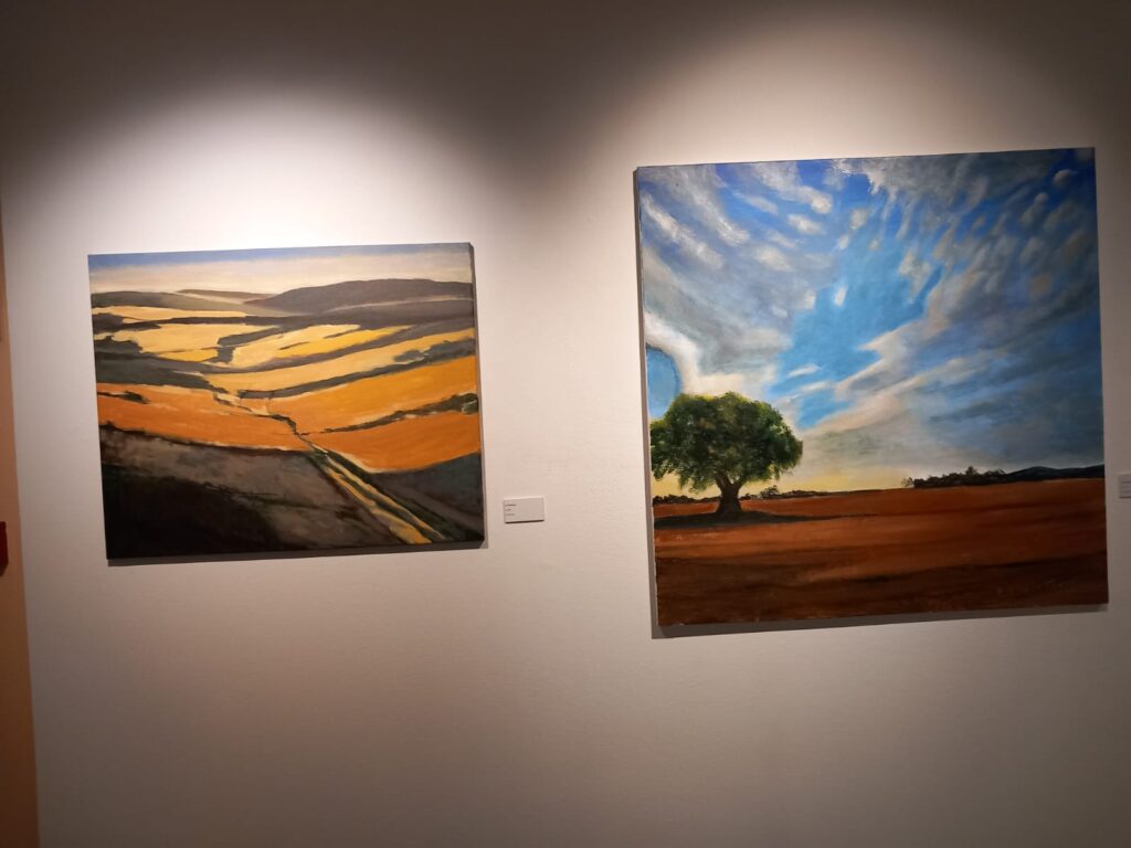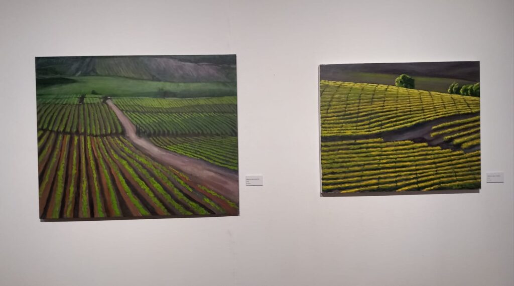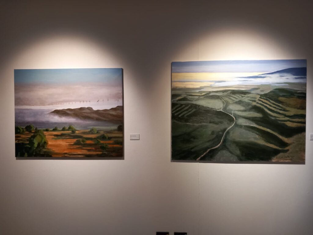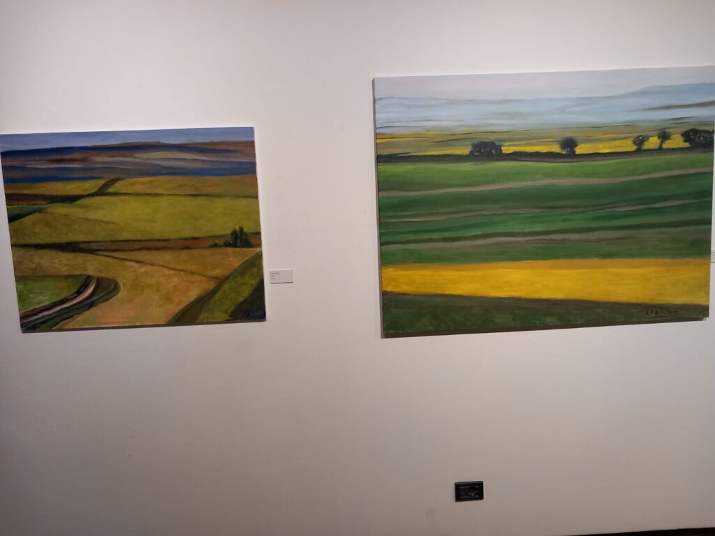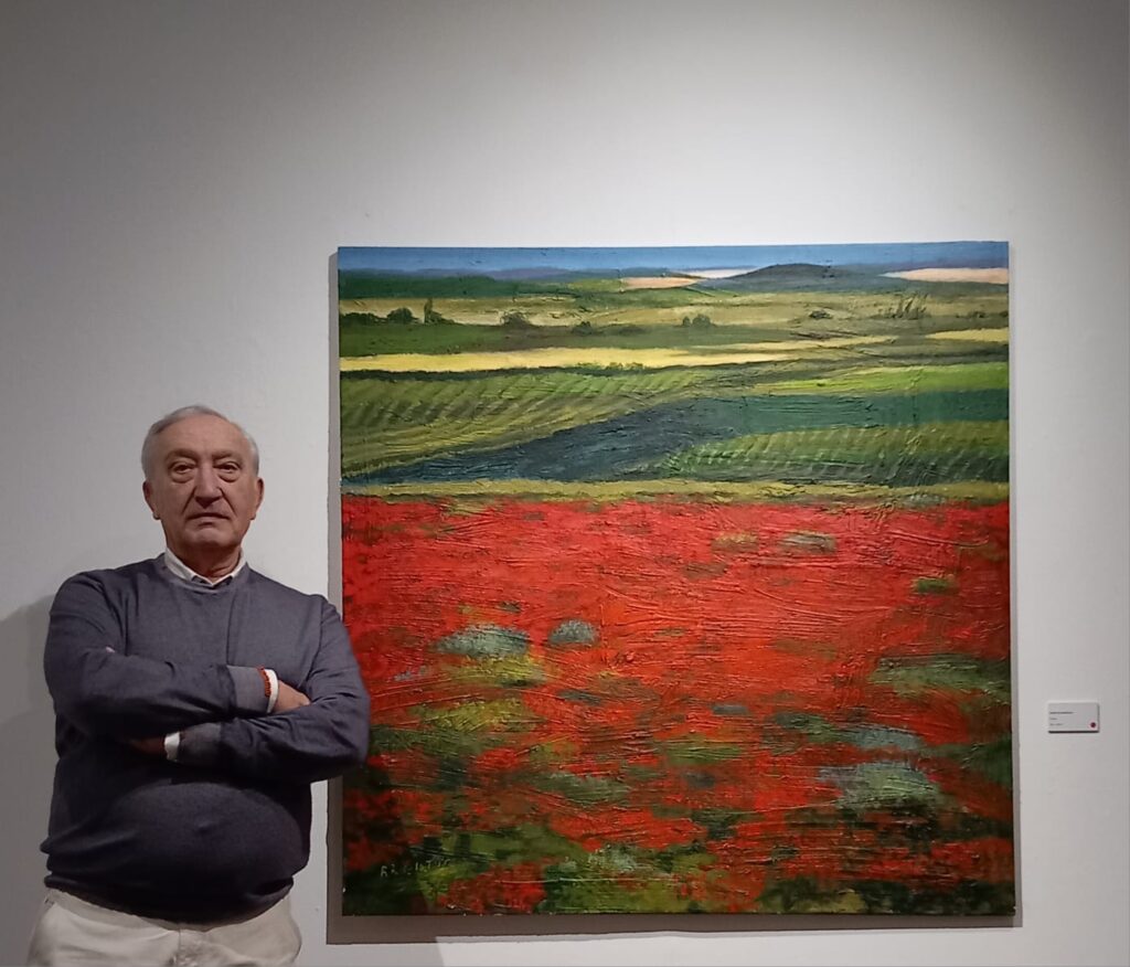Sus pinturas nos sitúan frente a viñedos en La Rioja, en mitad de una plantación de cereal, junto a un campo de amapolas, al lado del río Alhama, en el Monte Yerga…