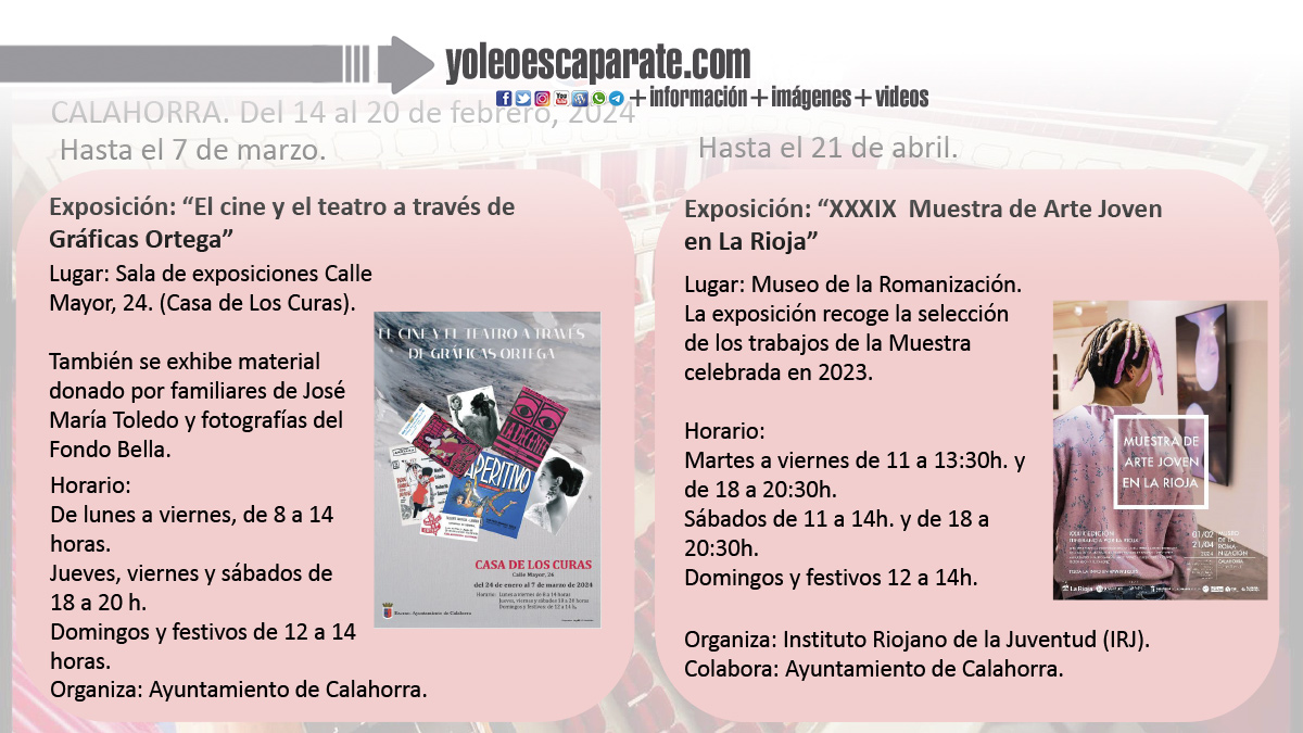 Ya está en marcha la agenda cultural para los próximos días en Calahorra. Del 14 al 20 de febrero, 2024