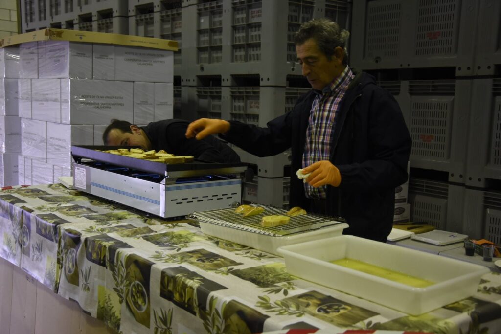 Este pasado fin de semana mucha gente tuvo la posibilidad de probar el aceite de la Sociedad Cooperativa Los Santos Mártires, que organizó, un año más, la «Fiesta de la Pringada» en las instalaciones de su trujal.