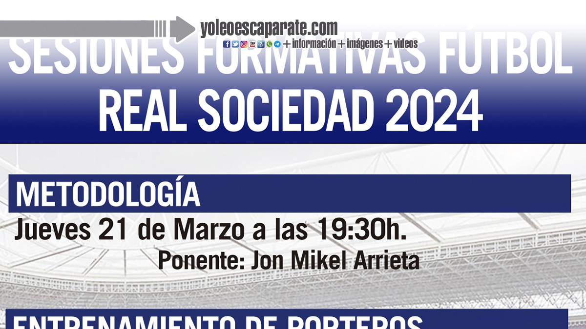 La primera ponencia será el jueves, 21 de marzo. El coordinador de metodología de la Real Sociedad, Jon Mikel Arrieta, hablará sobre la metodología enfocada a mejorar los procesos de entrenamiento y a ayudar al entrenador en su trabajo.