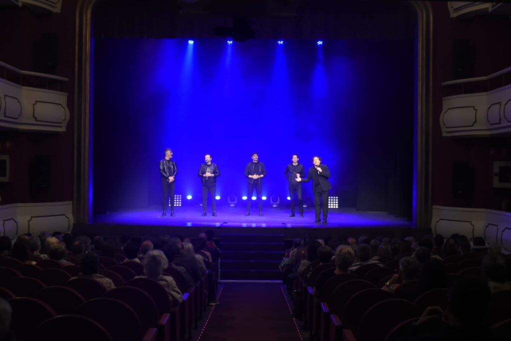 El numeroso públicio aistente al Ideal de Calahorra el pasado sábado 6 de abril, pudo difrutar del humor del Grupo B vocal.