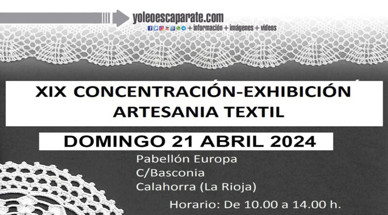 El domingo 21 de abril va a tener lugar la XIX Concentración- Exhibición artesanía textil en Calahorra organizada por ARTECA Asociación Textil Calagurritana.