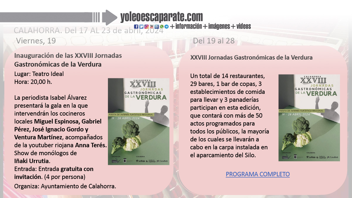 La periodista Isabel Álvarez presentará la gala en la que intervendrán los cocineros localesMiguel Espinosa, Gabriel Pérez, José Ignacio Gordo y Ventura Martínez, acompañados de la youtuberriojanaAnna Terés.