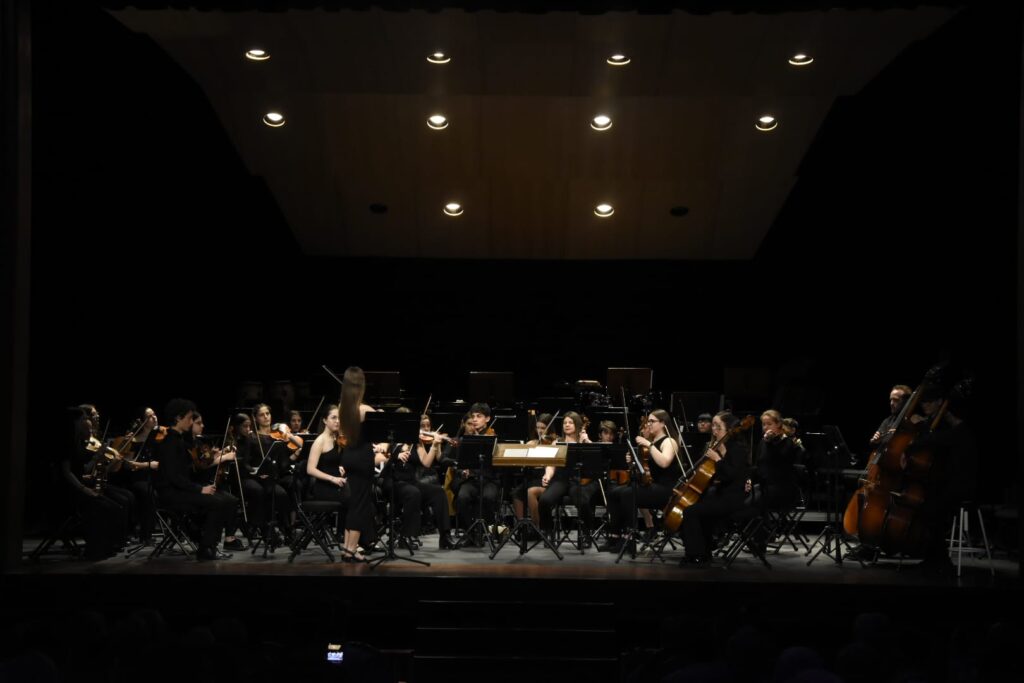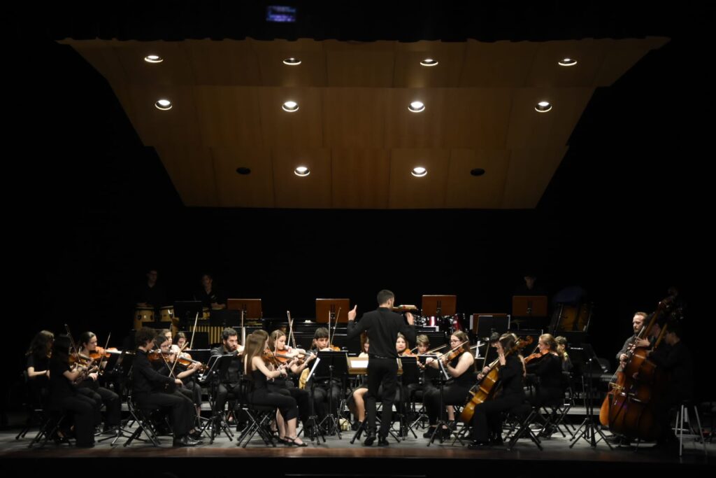 Ayer tuvo lugar en el Teatro Ideal de Calahora el Concierto fin de curso de la Orquesta Sinfónica del Conservatorio de Música de Calahorra bajo la dirección de Vicente Marín Díez.