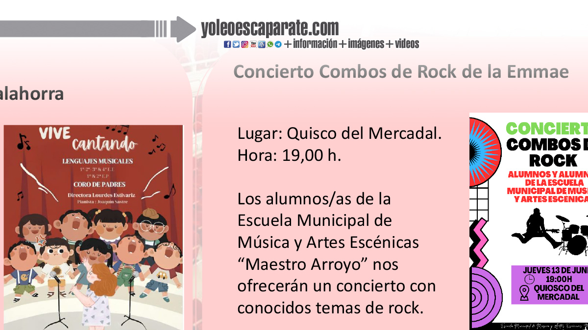 Los alumnos/as de la Escuela Municipal de Música y Artes Escénicas “Maestro Arroyo” nos ofrecerán un concierto con conocidos temas de rock.