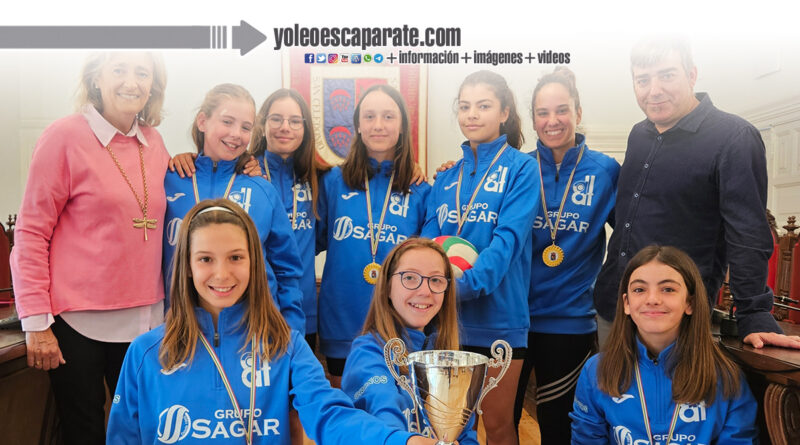 Las jugadoras le han enseñado a la alcaldesa y al concejal de Deportes sus medallas y la copa que ganaron el pasado 2 de junio en Logroño, proclamándose campeonas alevines de La Rioja.