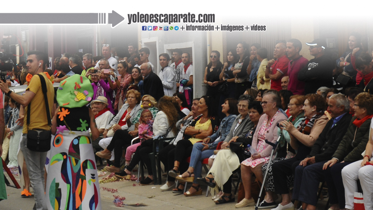 Concentración de los Representantes de las Fiestas, Corporación y cuadrillas de Rincón de Soto para acudir a la plaza de toros, acompañados por la charanga Strapalucio