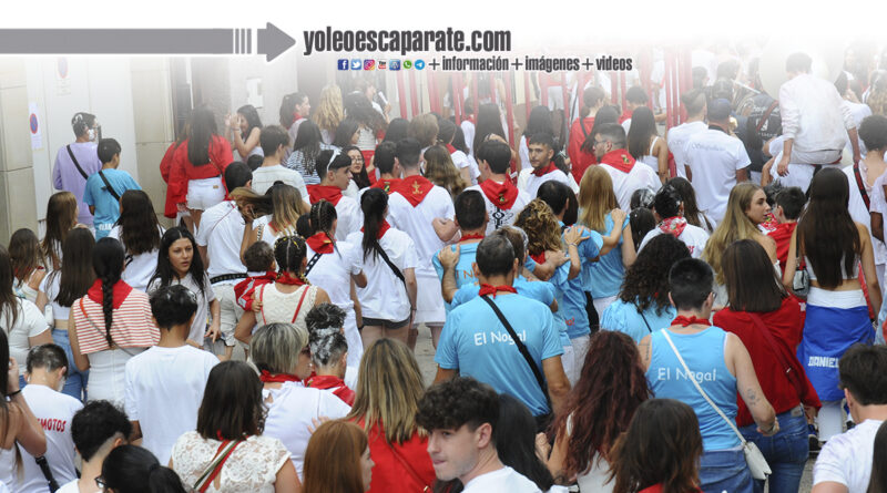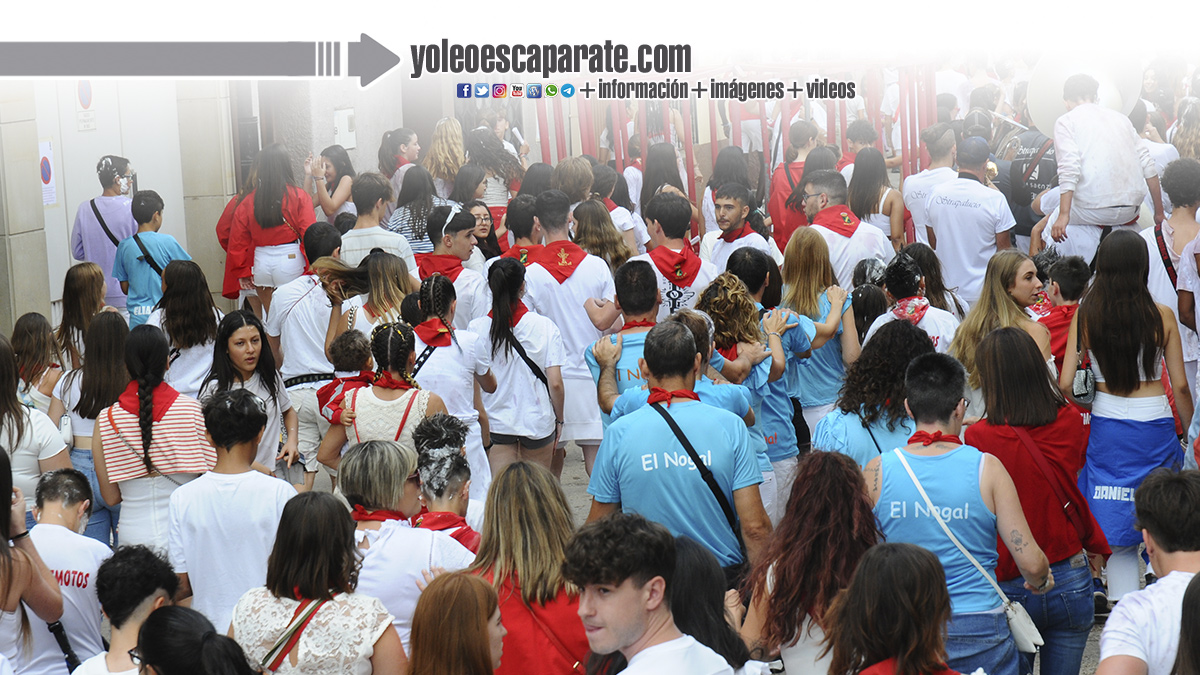 Concentración en la Plaza Gallarza de los Representantes de las Fiestas, Corporación y cuadrillas de Rincón de Soto para acudir a la plaza de toros, acompañados por la charanga Ascape