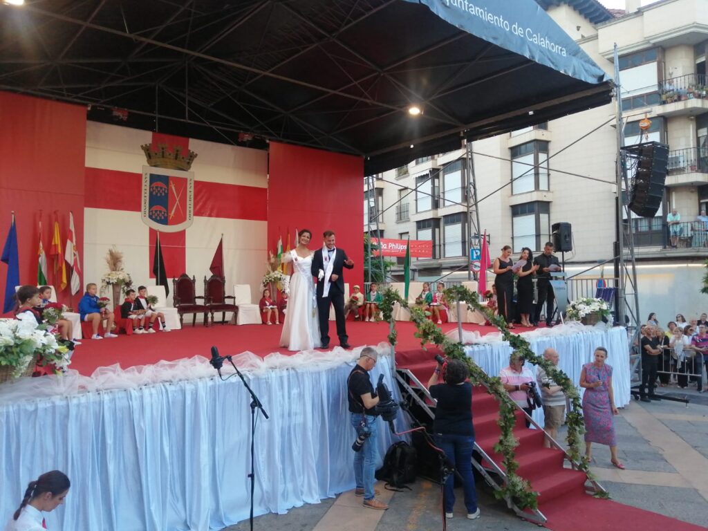 En la tarde de ayer, Calahorra coronaba a Carmela Del Pozo Tobajas, de la peña Calagurritana, y José Piriz Ortega, de la peña El Hambre, como Reina y Rey respectivamente de la fiestas 2024-2025 y rendía homenaje a las Calagurritanas de Honor de este año que son el grupo de voluntarias municipales turístico-culturales: Mª Concepción Cordón Anguiano, Araceli del Puente Antoñanzas, Mª Victoria García Rabanera, Mª Asunción Madorrán Broquetas, Mª Julia Madorrán Herce y Mª Dolores Aldea Castilla.