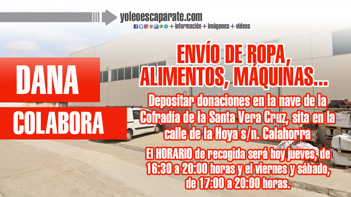 Además, el Ayuntamiento de Calahorra está coordinando el envío de ropa, alimentos, máquinas, etc. Para ello, todas las personas que quieran ayudar a las personas afectadas por la DANA podrán depositar sus donaciones en la nave de la Cofradía de la Santa Vera Cruz, sita en la calle de la Hoya s/n, a partir de esta tarde, a partir de las 16:30 horas.