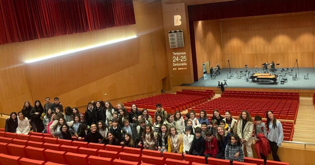 El pasado 15 de noviembre, alumnado del Departamento de Instrumentos no sinfónicos del Conservatorio de Música de Calahorra, compuesto por jóvenes entre 8 y 16 años, tuvo la oportunidad de asistir a un concierto excepcional en el Auditorio Baluarte de Pamplona . En esta ocasión, los jóvenes músicos vivieron la experiencia de escuchar en directo a la mundialmente conocida pianista Martha Argerich, quien, acompañada al piano por Pablo Galdo, se unió a la Orquesta Sinfónica de Navarra para ofrecer una velada inolvidable.