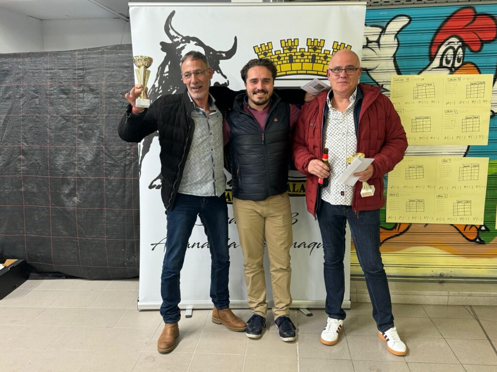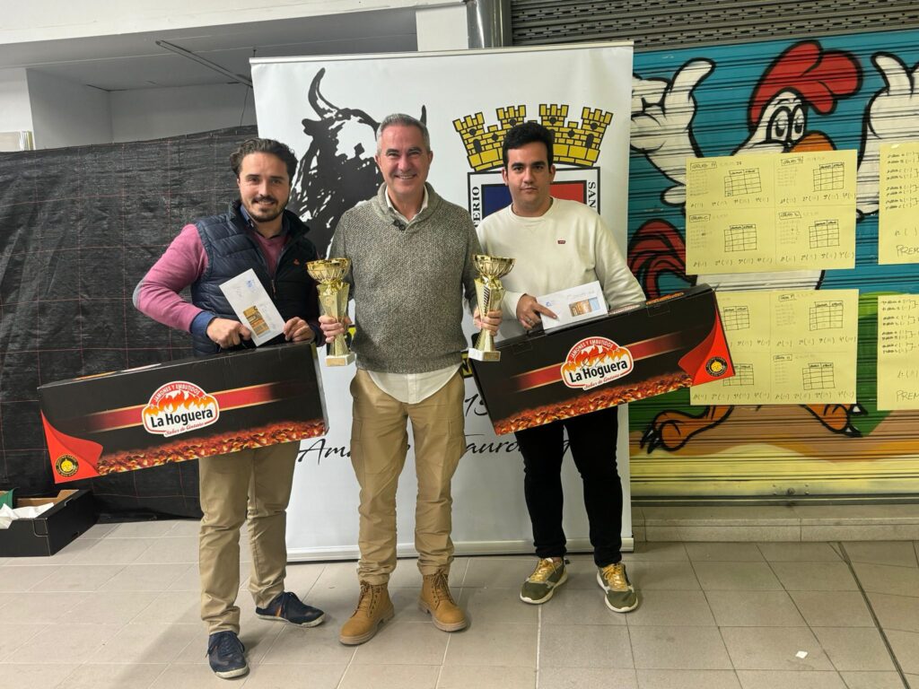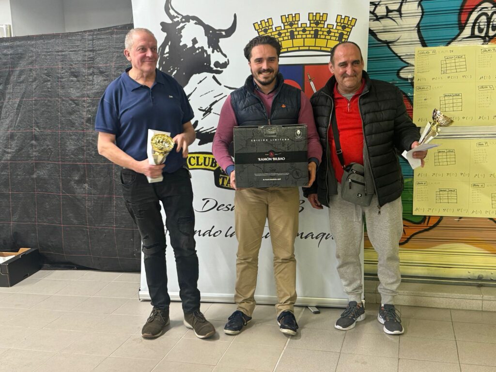 El concejal del Ayuntamiento Antonio Mazo hizo entrega de los 2 jamones, 300€ y 2 trofeos a la pareja vencedora del V CAMPEONATO DE MUS CLUB TAURINO DE CALAHORRA