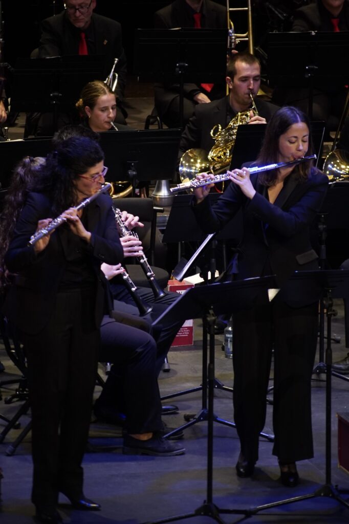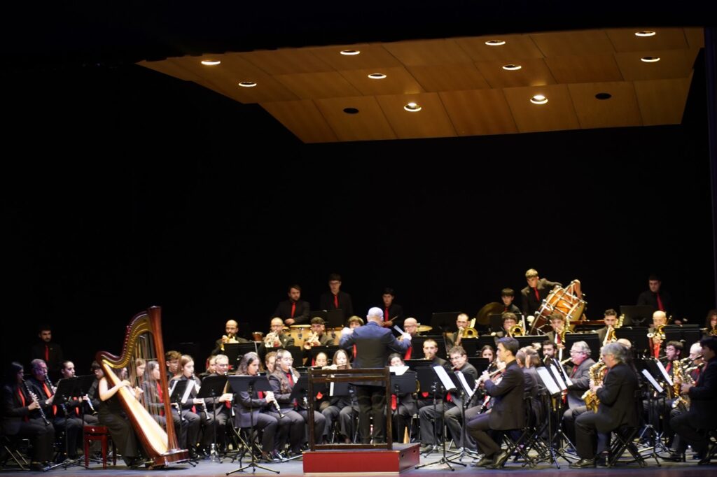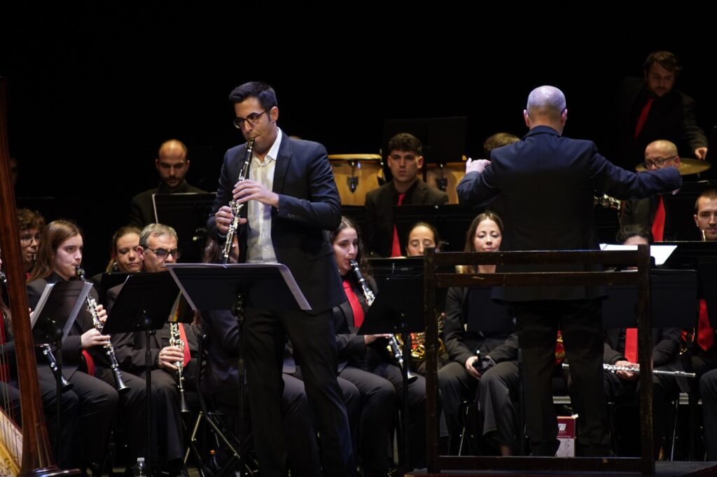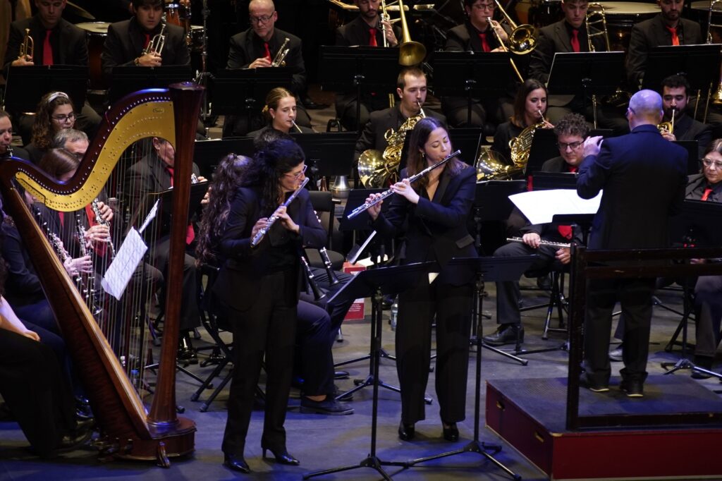 La banda interpretó obras de Óscar Navarro y Kurt Gäble con la colaboración inestimable como solistas de Ángel Belda, clarinete solista de la Orquesta Nacional y Eva Álvarez, piccolo solista de la Orquesta de RTVE.