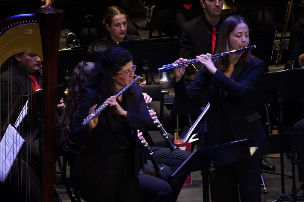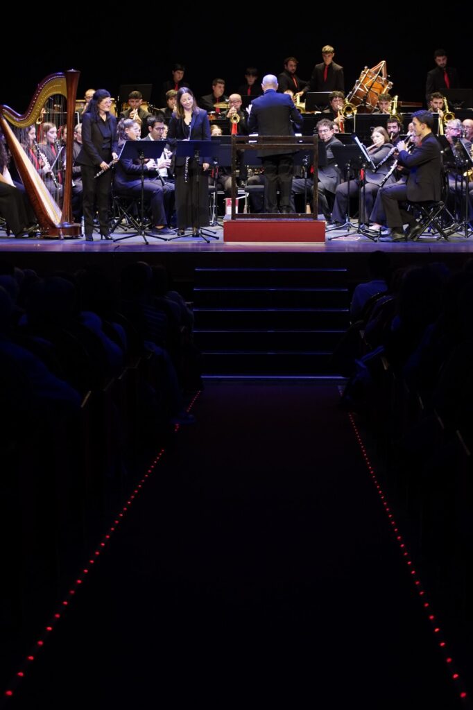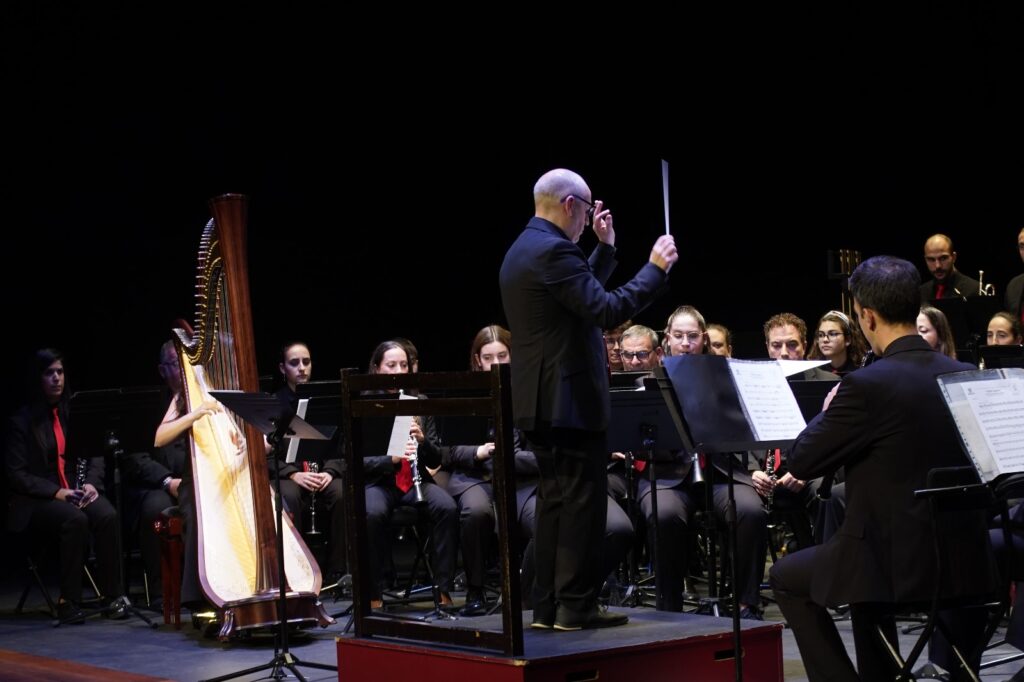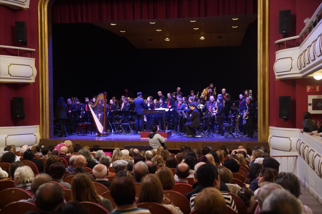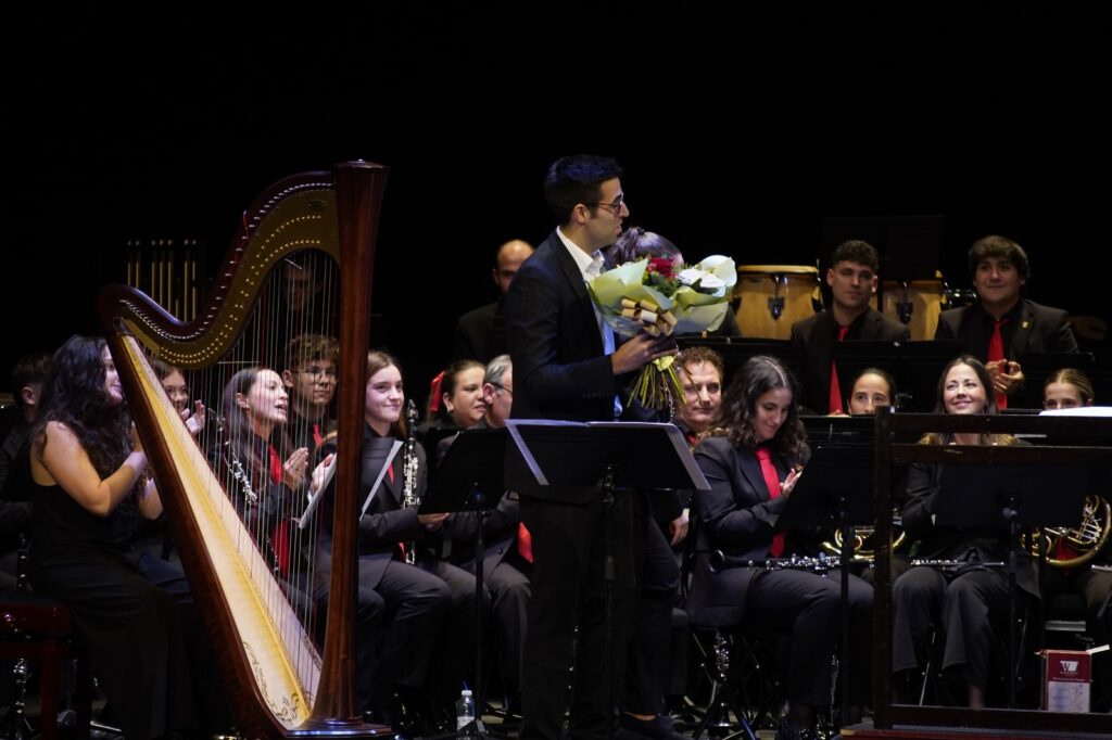 La banda interpretó obras de Óscar Navarro y Kurt Gäble con la colaboración inestimable como solistas de Ángel Belda, clarinete solista de la Orquesta Nacional y Eva Álvarez, piccolo solista de la Orquesta de RTVE.
