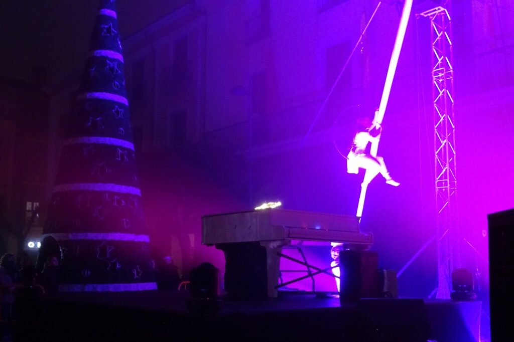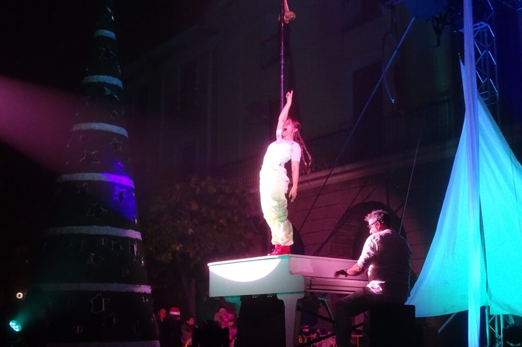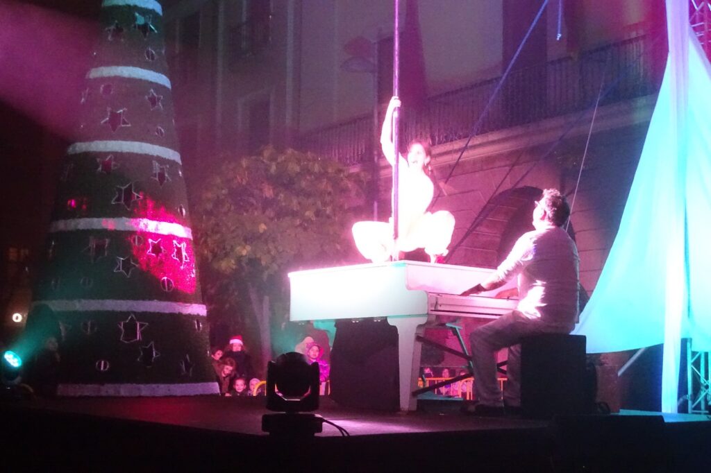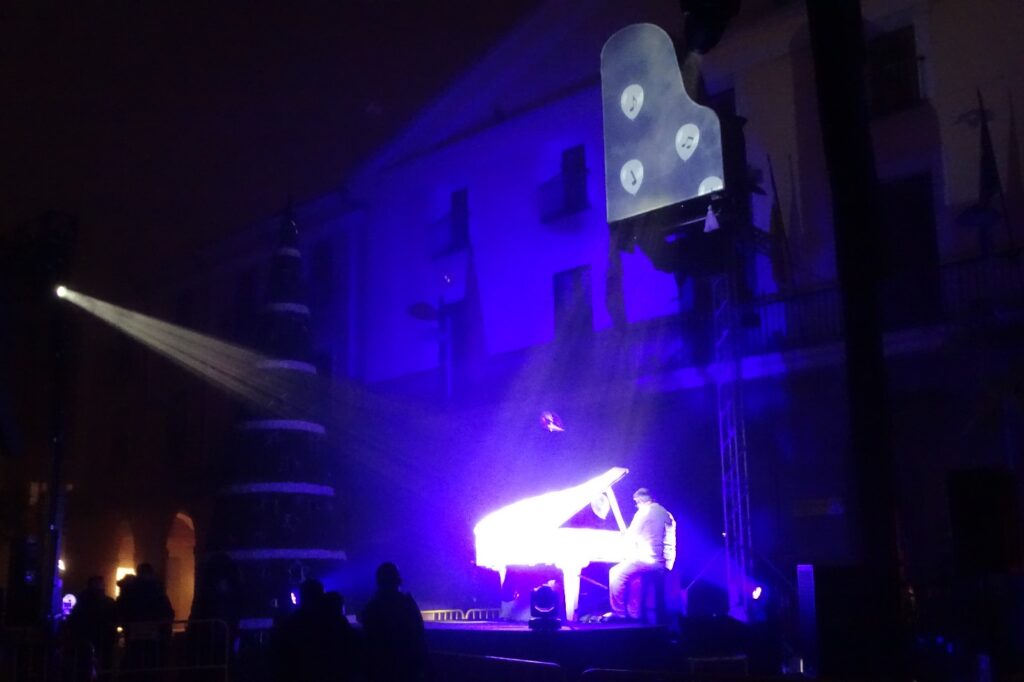 Un espectáculo con un piano vertical, la actuación del gimnasio Fit Dance y la de la Asociación Gospel Alfaro fueron los encargados de animar el encendido de las luces de Navidad en Alfaro.