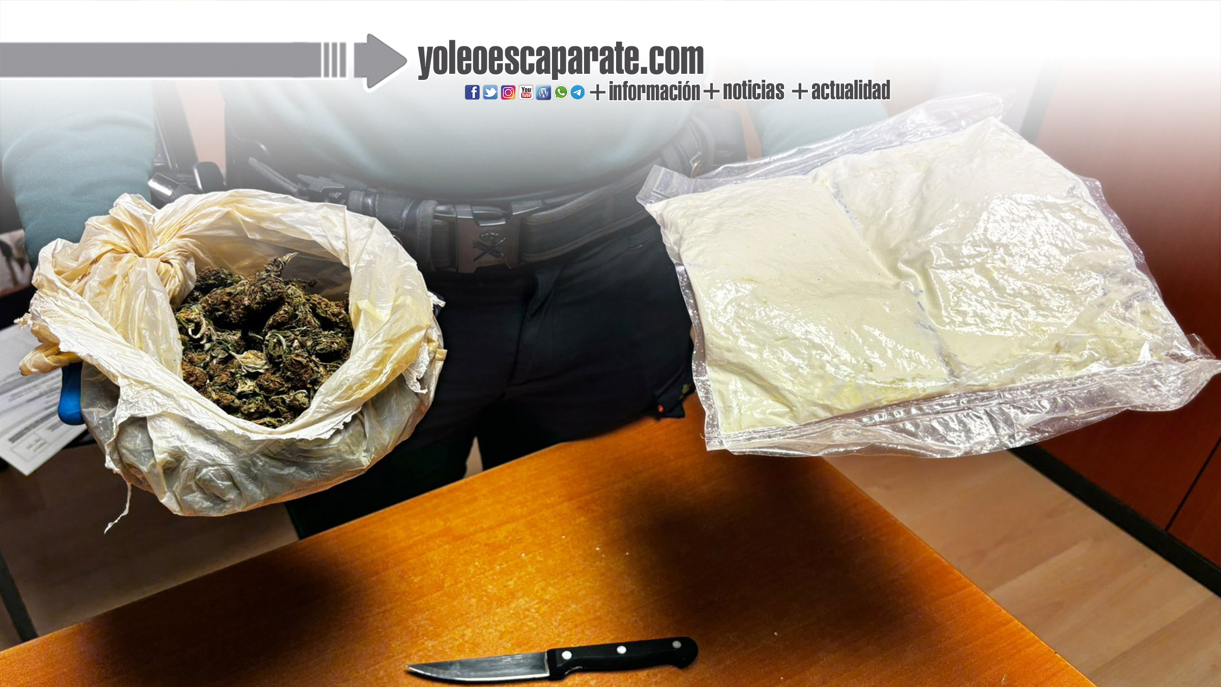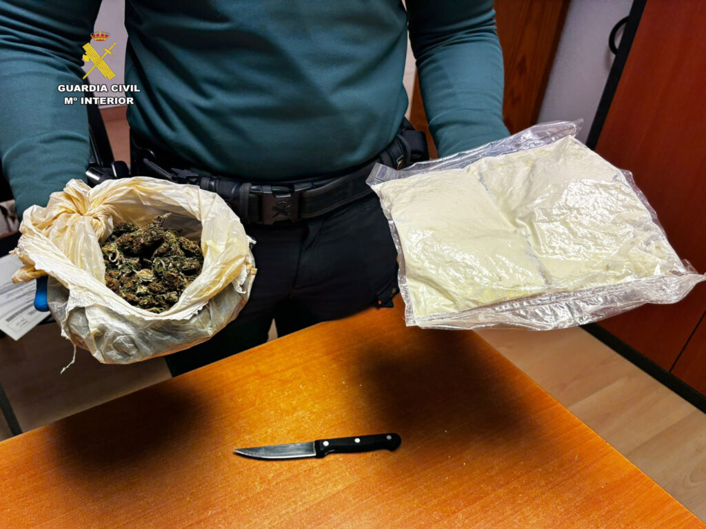 Cuando los agentes procedieron a su identificación, el individuo reaccionó de manera violenta y tuvo que ser reducido. Durante el registro, se le intervino un cuchillo de cocina con una hoja de 10 cm, que mantenía agarrado con la mano dentro del bolsillo de su sudadera. Además, bajo la prenda, llevaba una bolsa que contenía 508 gramos de speed de alta pureza y 96 gramos de marihuana, lo que motivó su detención por los delitos mencionados.
