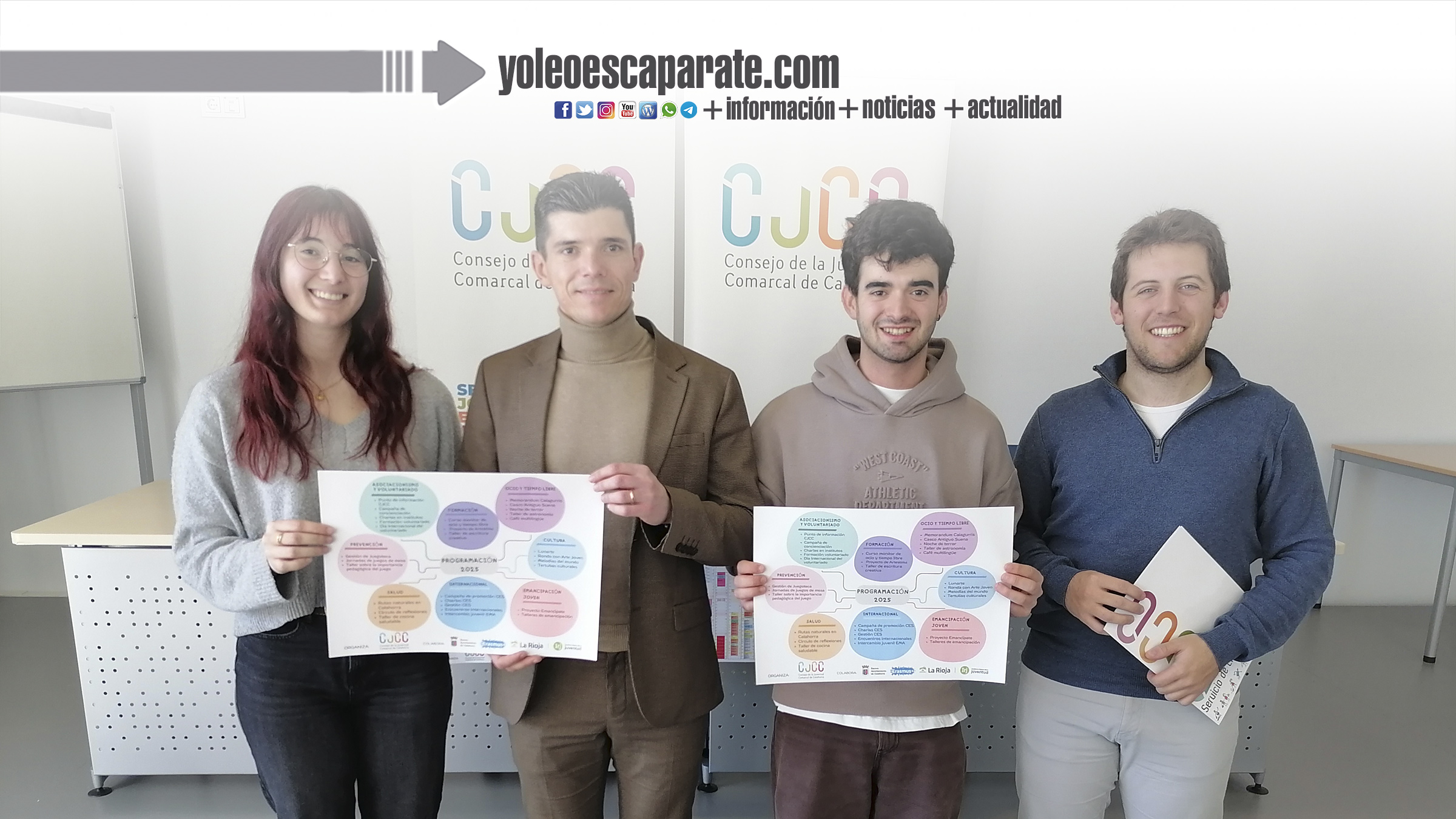 El Consejo de la Juventud Comarcal de Calahorra representado por su presidente Daniel Toral y secretaria Leyre Amor, acompañados por el director del Instituto Riojano de la Juventud, Juan Diego Alcaide, y el concejal de Juventud del Ayuntamiento de Calahorra Iván Jiménez, ha presentdo su ambiciosa e ilusionante programación para el año 2025. Este proyecto, que representa el esfuerzo colectivo de todas las asociaciones y voluntariado que forman parte del Consejo de la Juventud, está diseñado para inspirar, educar y fortalecer la participación activa de los jóvenes de la comarca de Calahorra.