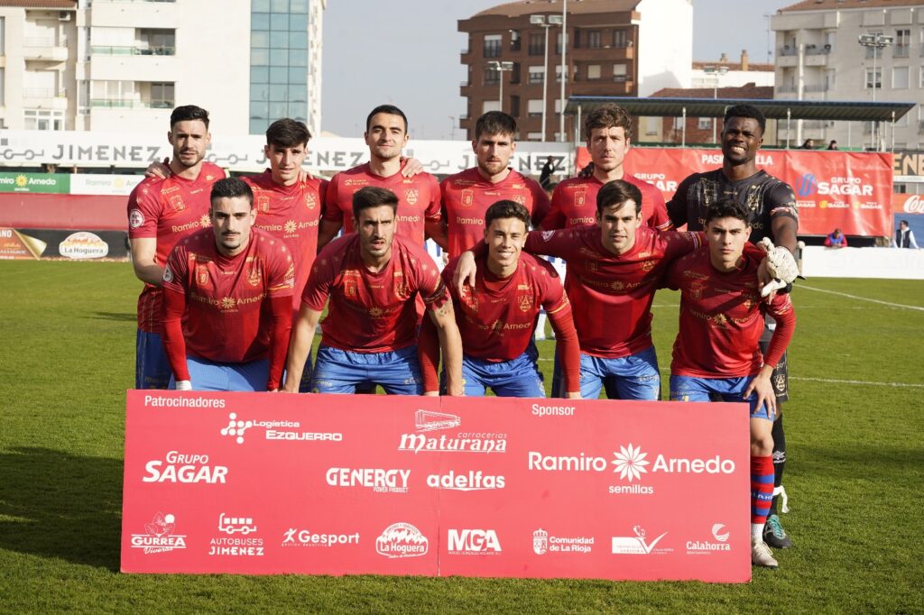 CD CALAHORRA: Razak Brimah, Beñat Garro, Facu Ballardo (m. 75, Asier Etxaburu), David Sánchez, Chus Villar, Javi Bueno, Víctor López, Íñigo Zubiri, Antonio Salinas (m. 71, David Aparicio), Junior Martínez (m. 71, Diego López de Haro) y Sergio Pascual (m. 75, Julen Hualde).