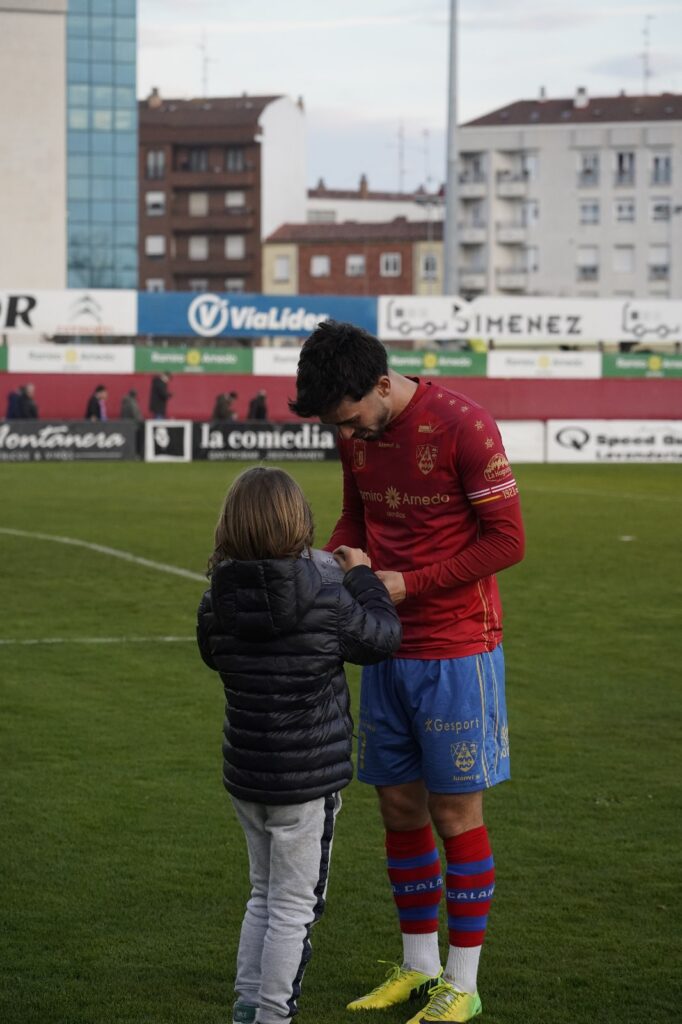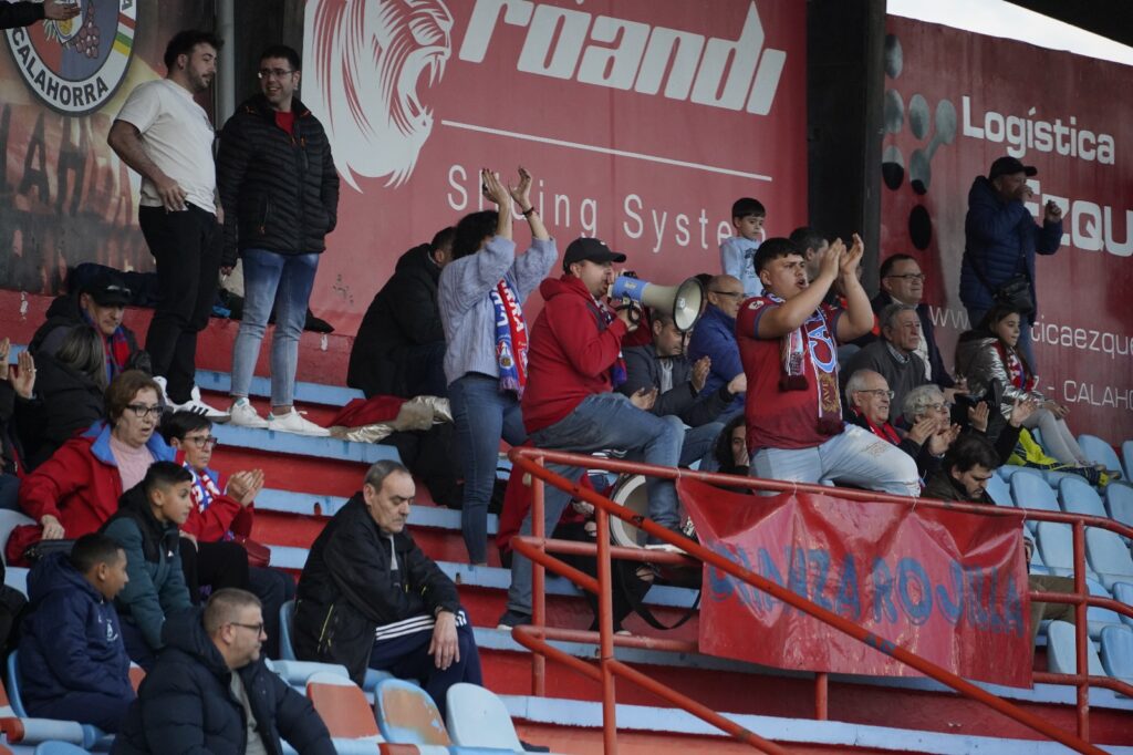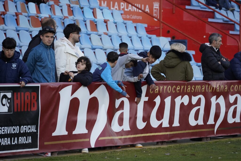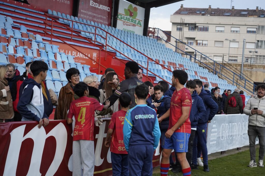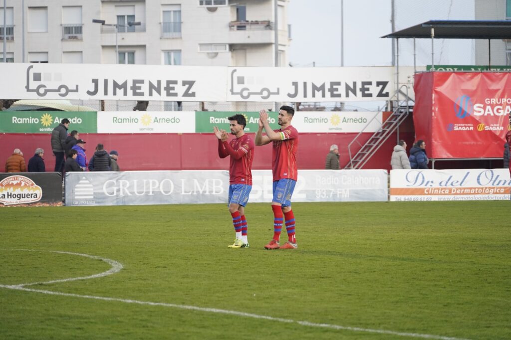 - El CD Calahorra vistió con su primera equipación, pantalón azul y camiseta roja.