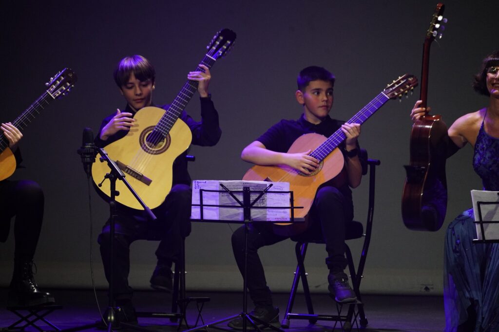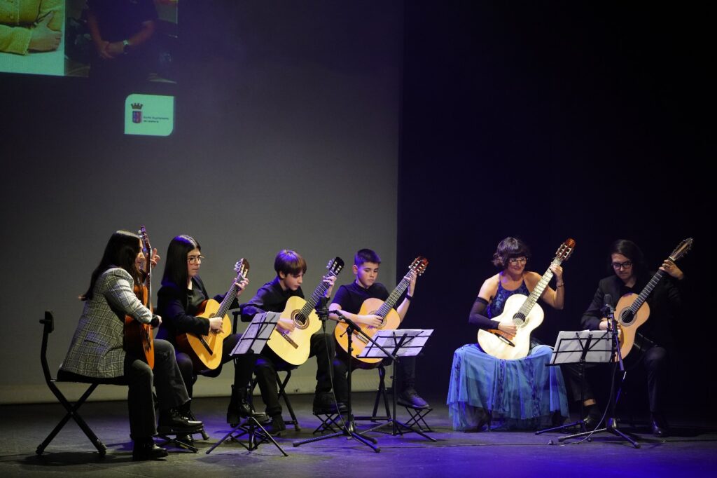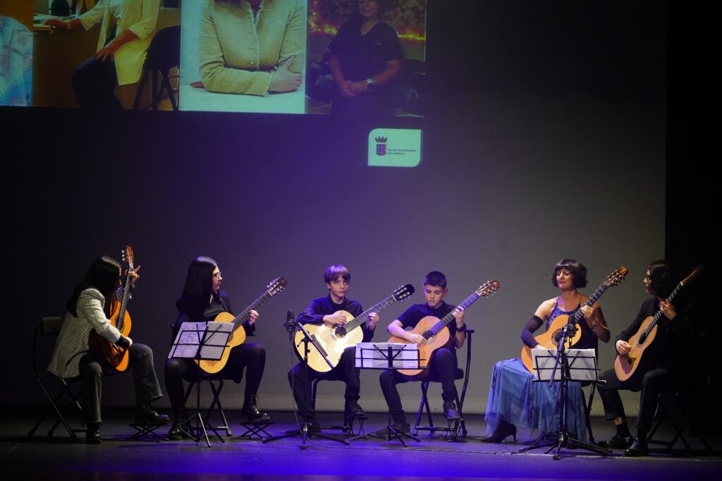 La periodista calagurritana de Antenas 3 Noticias, Beatriz San Juan, ha presentado esta primera gala de reconocimiento a la mujer emprendedora en la que los alumnos de guitarra y sus profesores Vanesa Cristóbal y Marco Marín han interpretado tres piezas musicales.