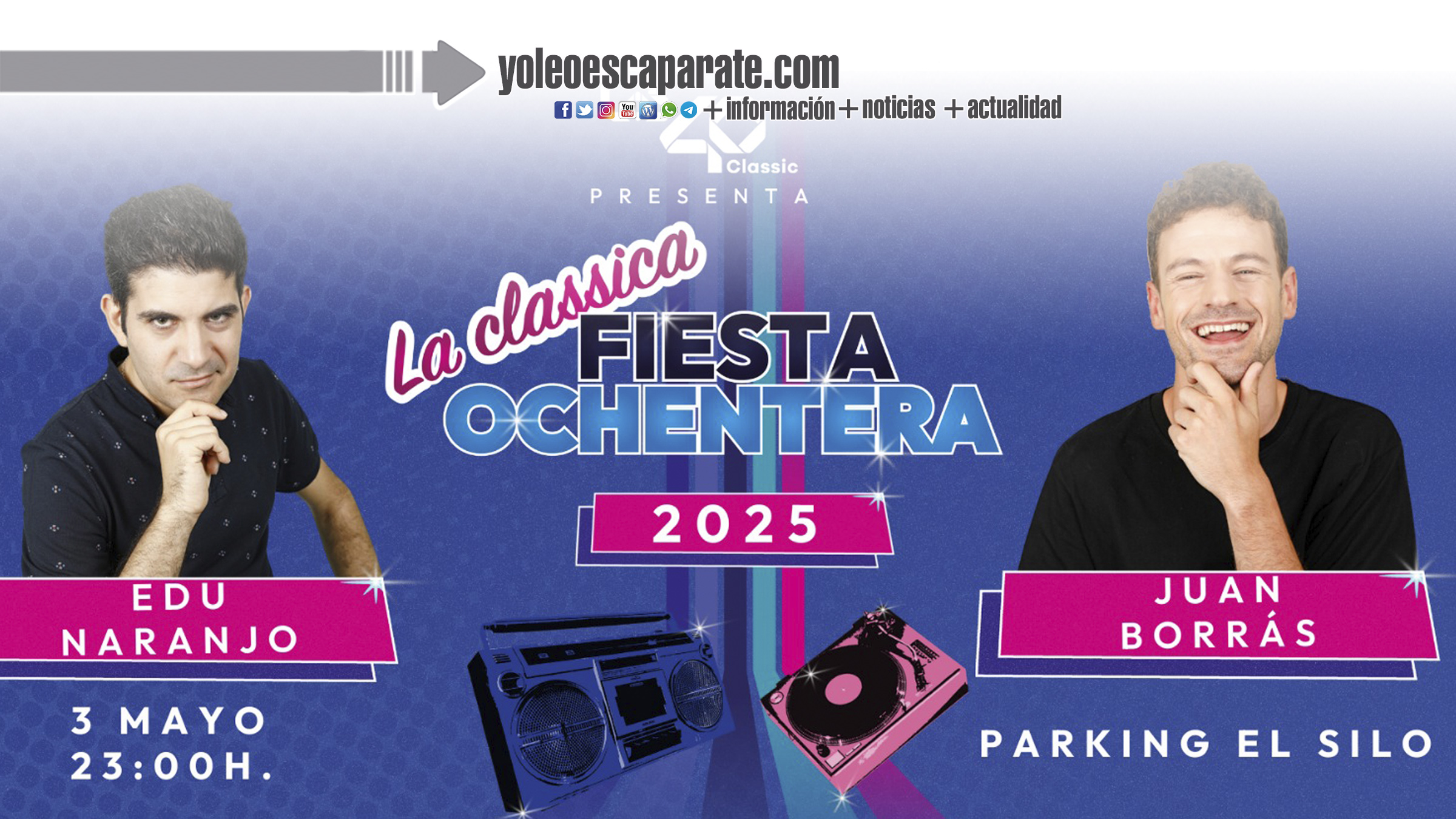 Tras el éxito del año pasado el Ayuntamiento de Calahorra ha decidido contratar el concierto de la Classic Fiesta Ochentera 2025 el 3 de mayo, ampliando su duración de 2 a 4 horas de música.