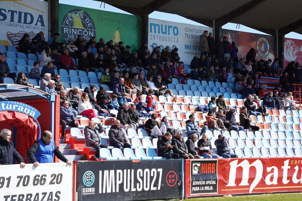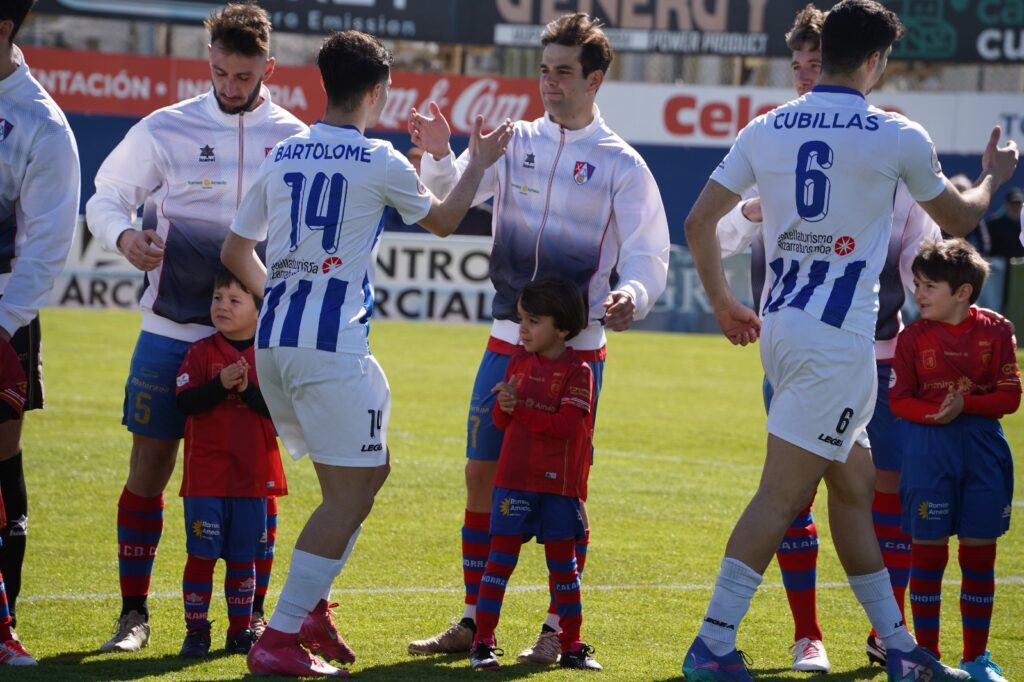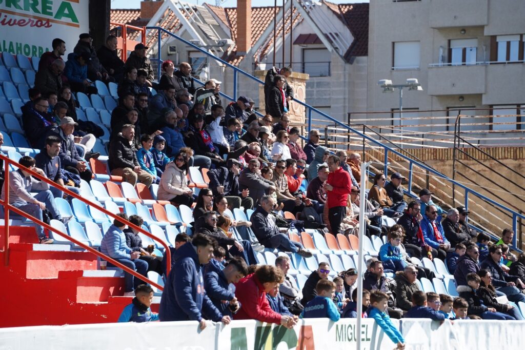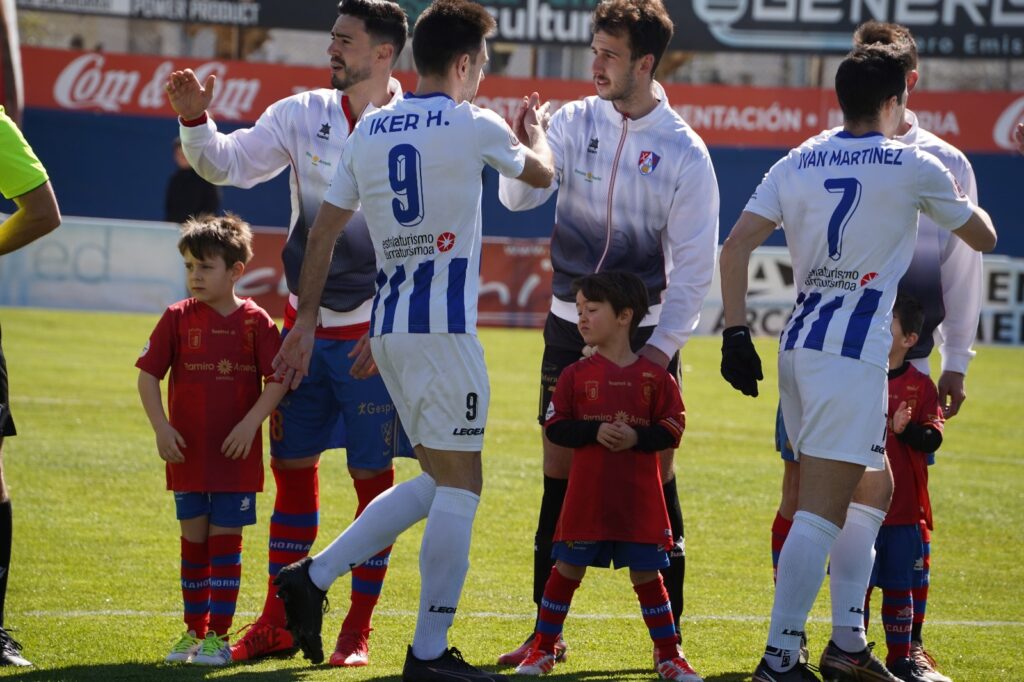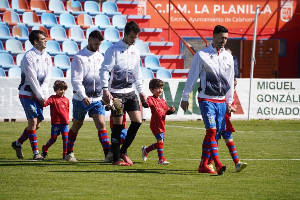 El CD Calahorra visitó con su primera equipación, pantalón azul y camiseta rojo.