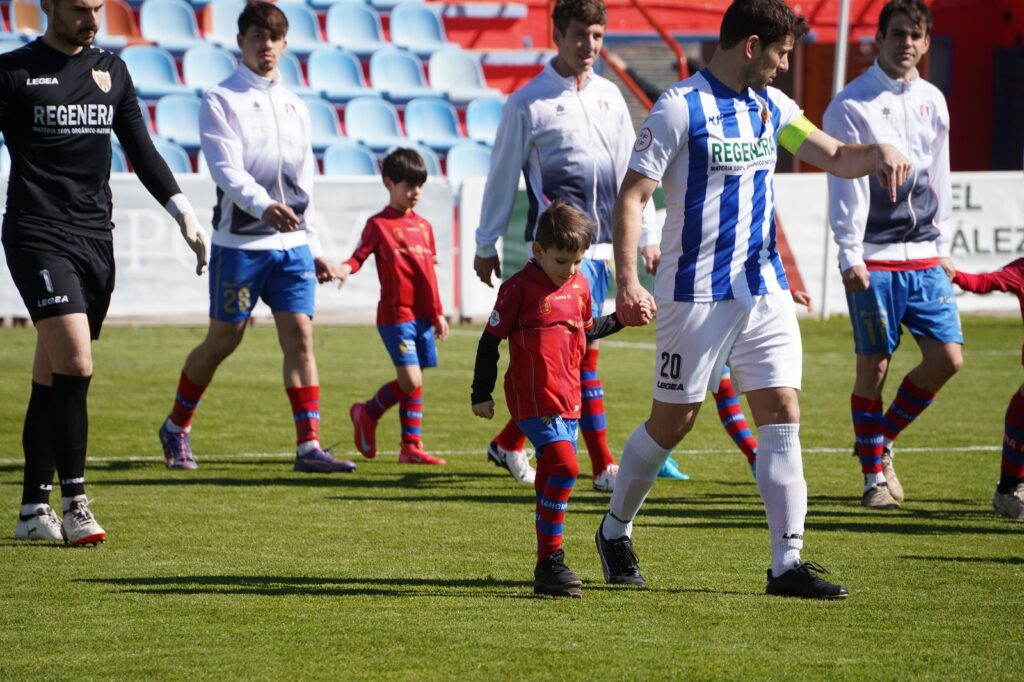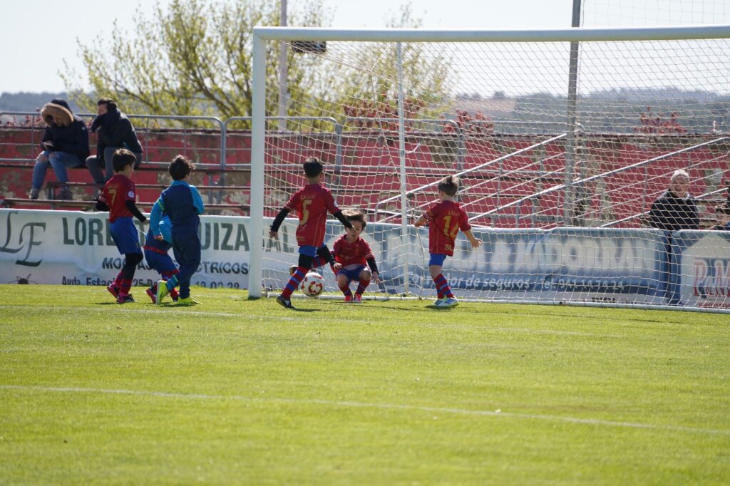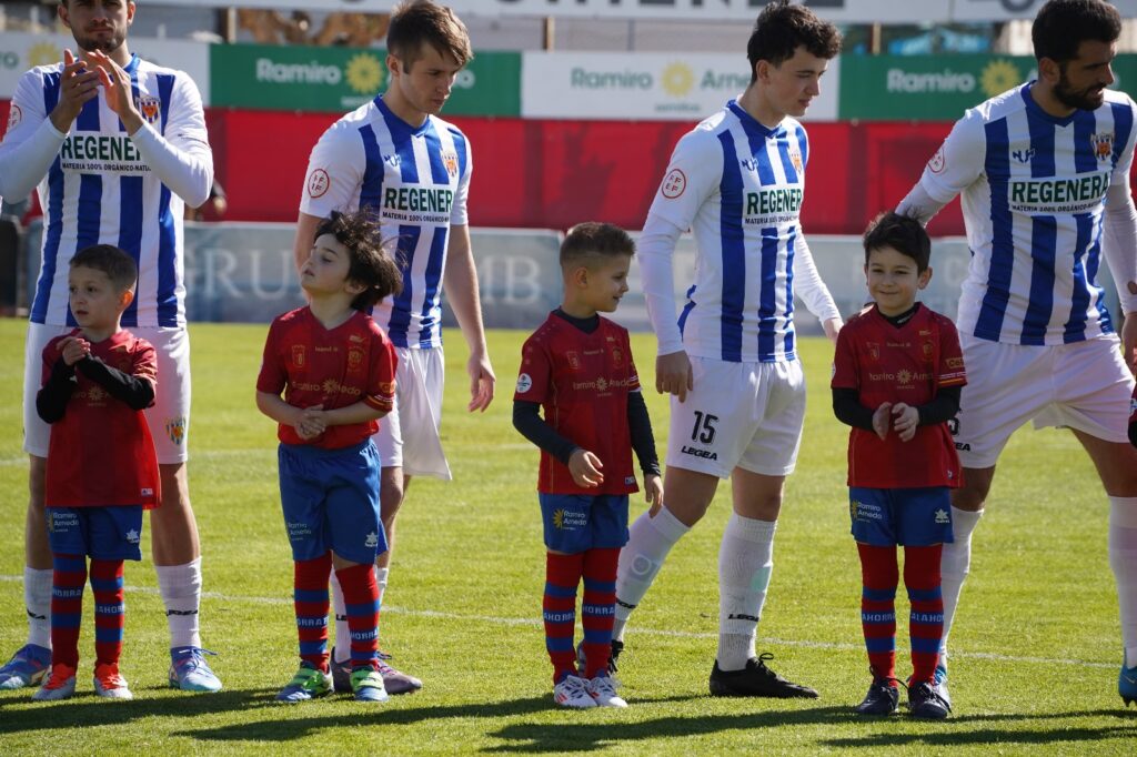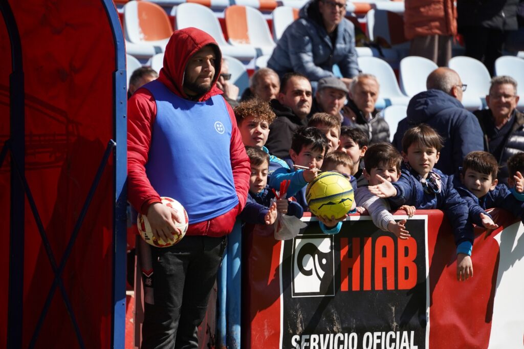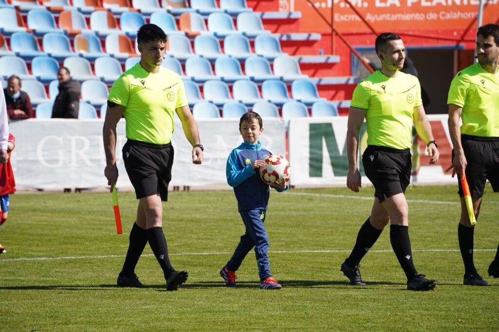 El CD Calahorra visitó con su primera equipación, pantalón azul y camiseta rojo.