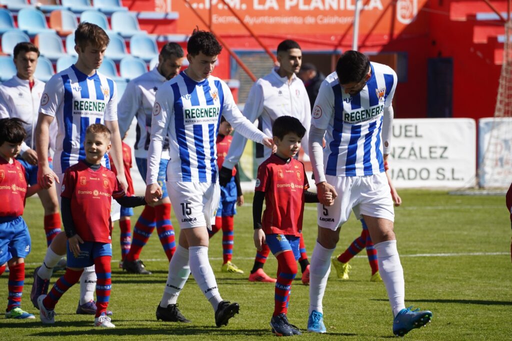 CD CALAHORRA: Brais Suárez; Íñigo Zubiri (Chus Villar, m. 46) (Facu Ballardo, m. 72), Beñat Garro, Jon Vega, Julen Hualde; Javi Cobo (David Aparicio, m. 52), Javi Bueno; Víctor López, Junior, Mohamed Khalid (Diego López de Haro, m. 71); Joel Sánchez (Asier Etxaburu, m. 52).