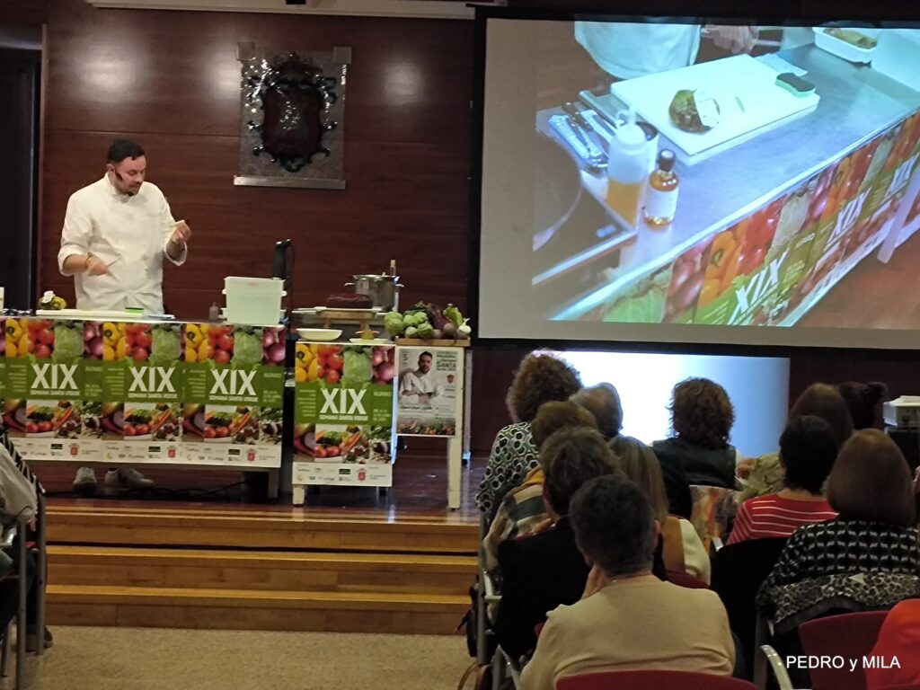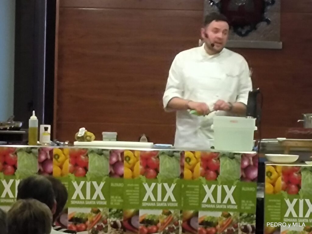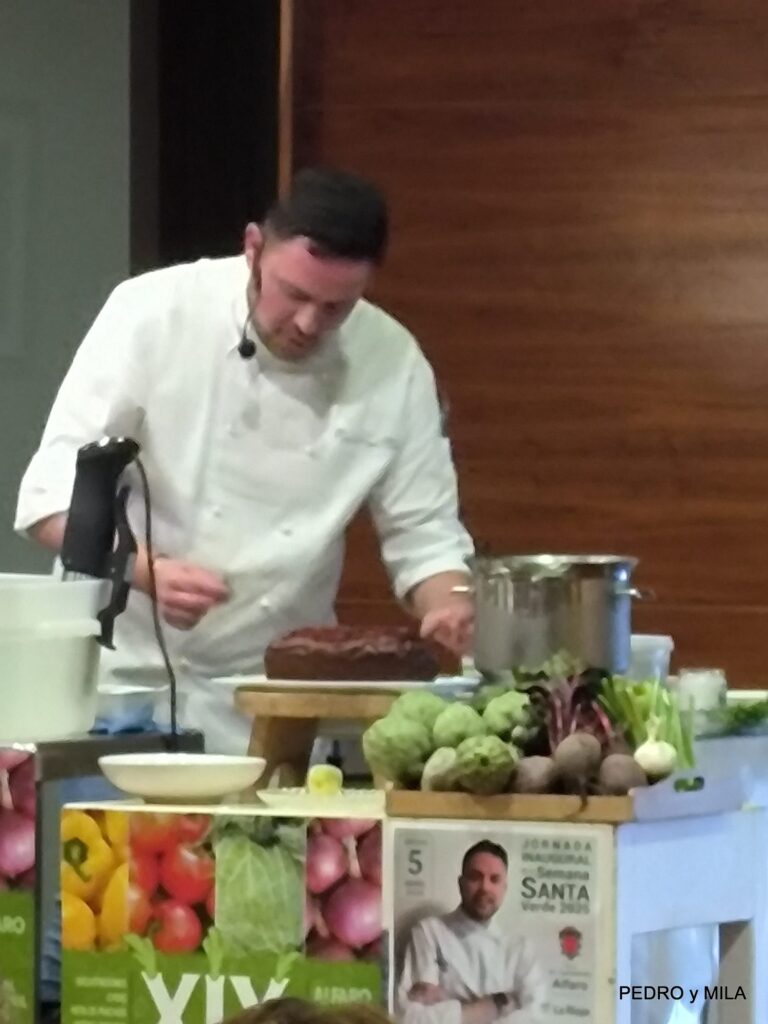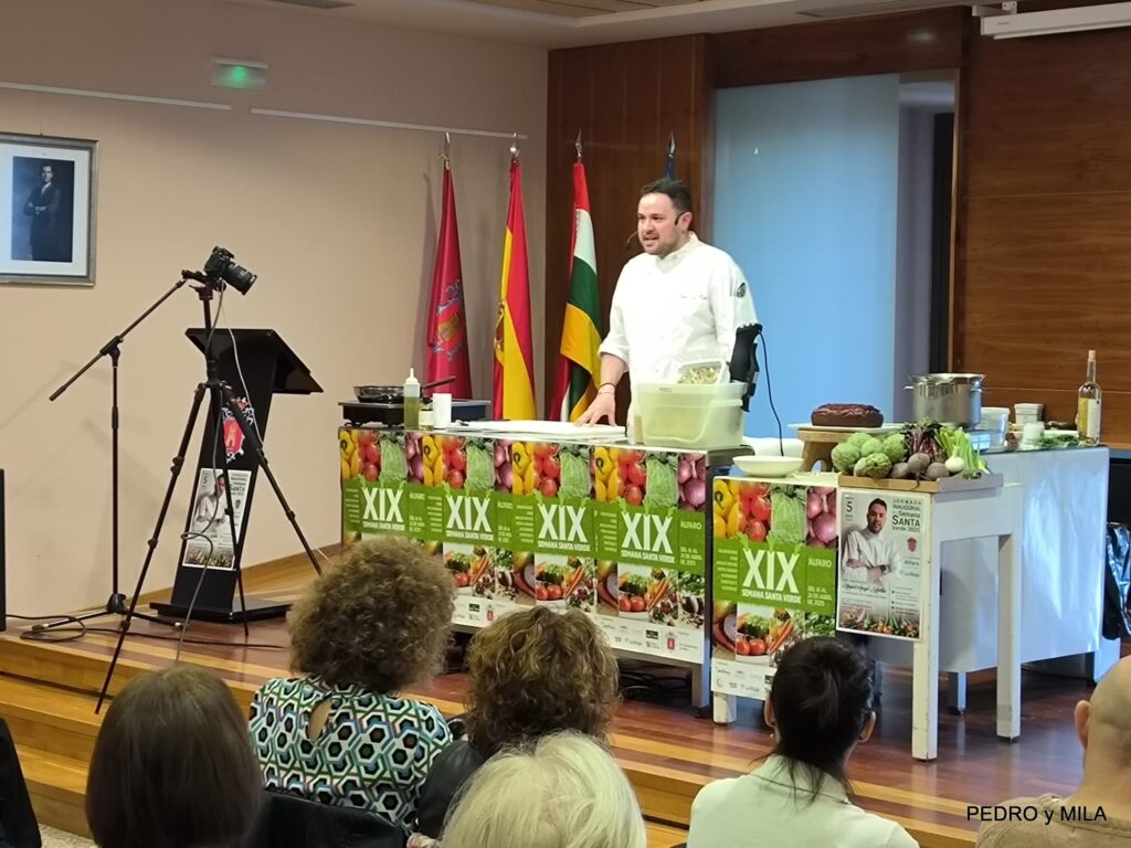 El sábado quedó inaugurada la XIX Semana Santa Verde de Alfaro. Miguel Ángel Martín, alfareño de sangre y adopción es el actual responsable de Alimentación y Bebidas e innovación de Áreas para España y Portugal, explicó tres recetas con verduras para hacer el menú en nuestra semana de la verdura 2025: Pintxo – Borrajas con Almejas – Bizcocho de remolacha con crema de queso
