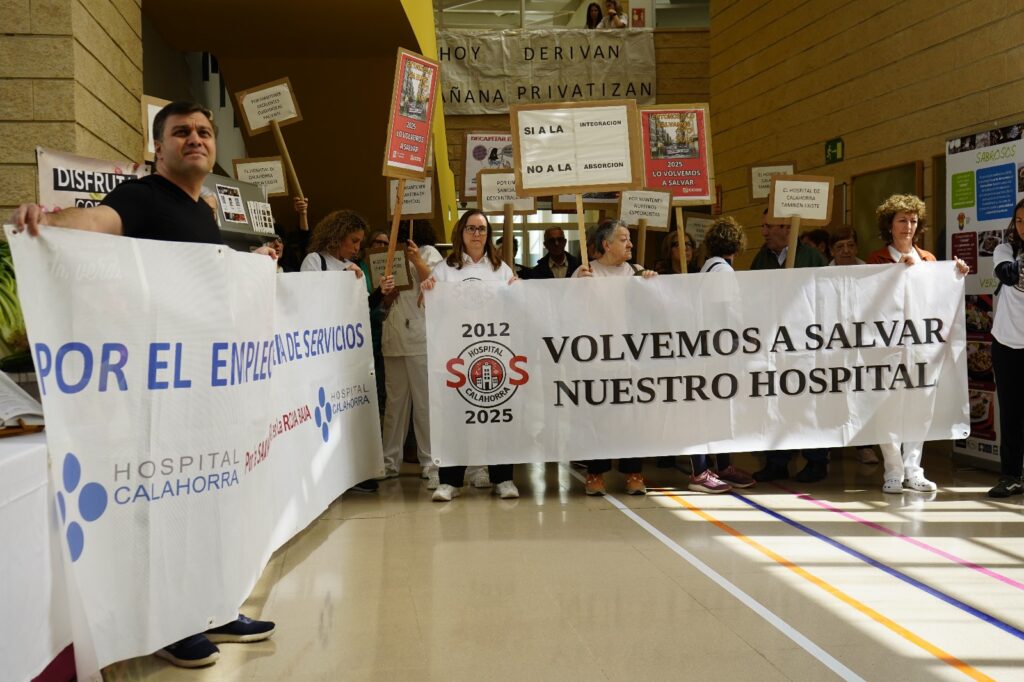 La gerente de Atención Hospitalaria del Servicio Riojano de Salud, Corpus Gómez, junto con la directora del Hospital de Calahorra, Patricia Martín, han participado este martes, 22 de abril, en la inauguración de los actos organizados en el Hospital Calahorra con motivo de la XXIX Jornadas Gastronómicas de la Verdura a la que también han decido acudir la plataforma ciudadana SOS HOSPITAL con el fin de seguir reivindicando ante las autoridades la situación del centro sanitario.