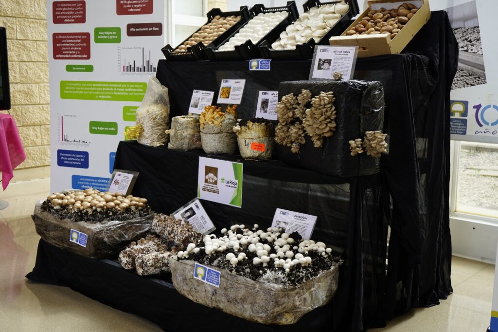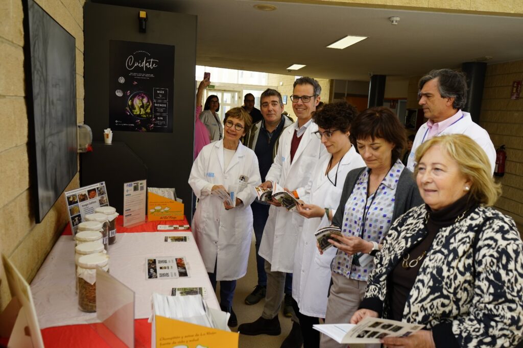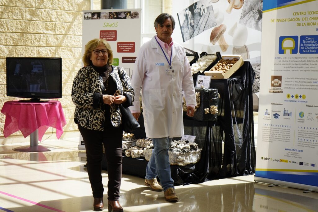 En ese sentido, en el vestíbulo del Hospital se ha habilitado un expositor como homenaje al producto hortofrutícola de La Rioja Baja, en el que han colaborado Aramark y la Asociación Profesional de Productores de Sustratos y Hongos de La Rioja, Navarra y Aragón (ASOCHAMP), que ha cedido una exposición de champiñones y una presentación audiovisual sobre el cultivo de estos hongos.