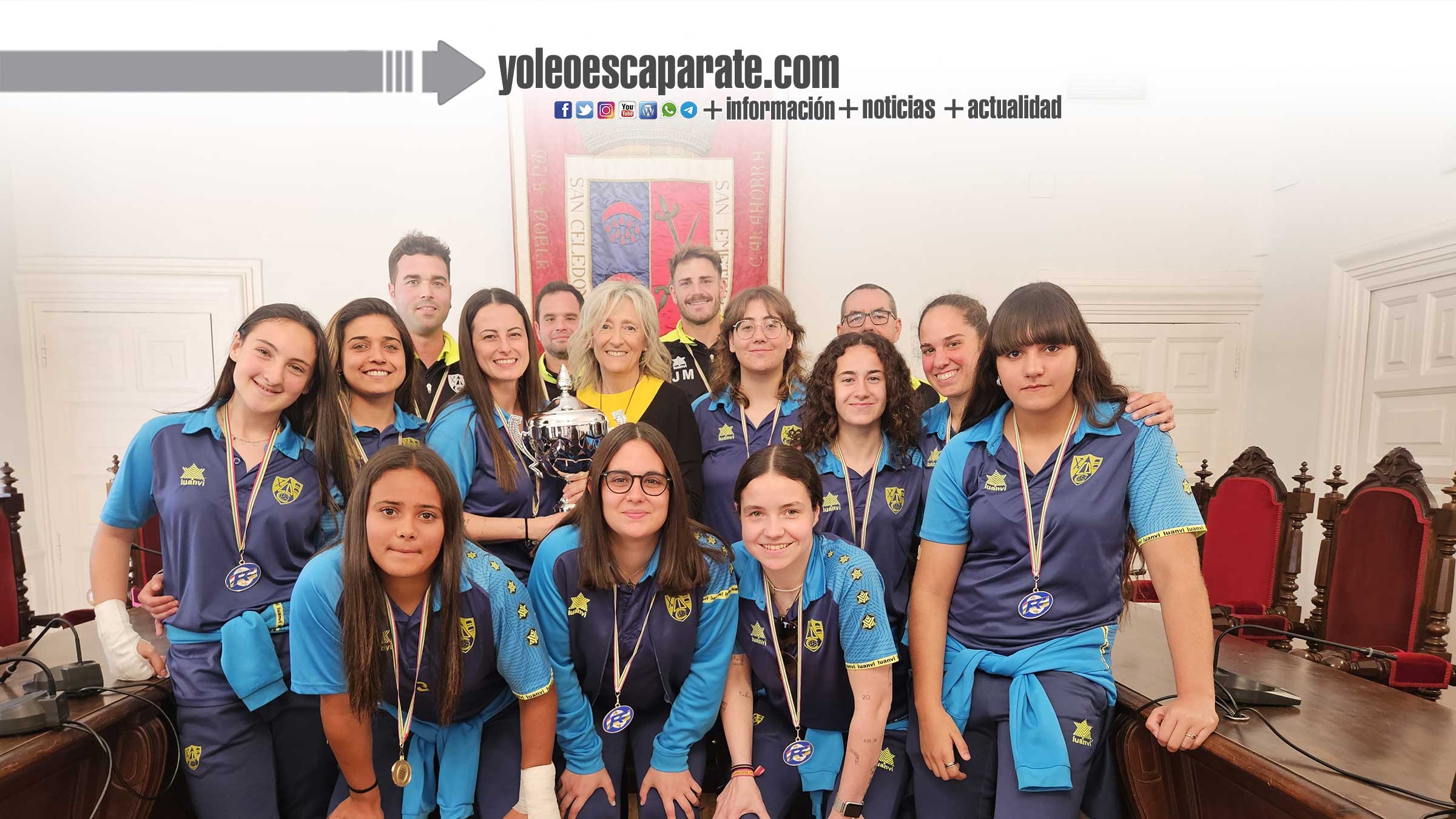 La alcaldesa de Calahorra, Mónica Arceiz, y el concejal de Deportes, David Antoñanzas, han recibido a las jugadoras, a los técnicos y a los directivos del club calagurritano en el salón de plenos del Ayuntamiento de Calahorra.