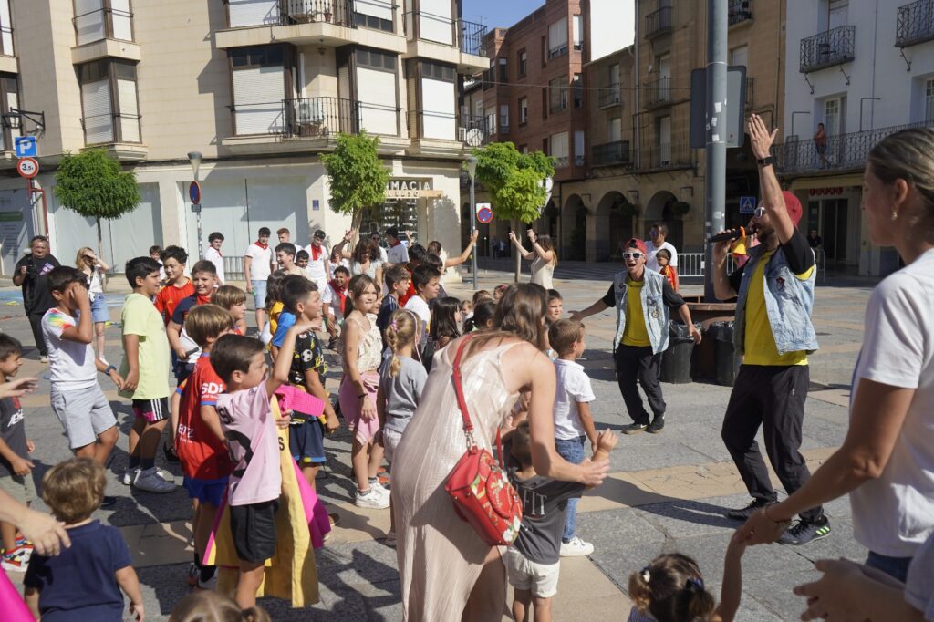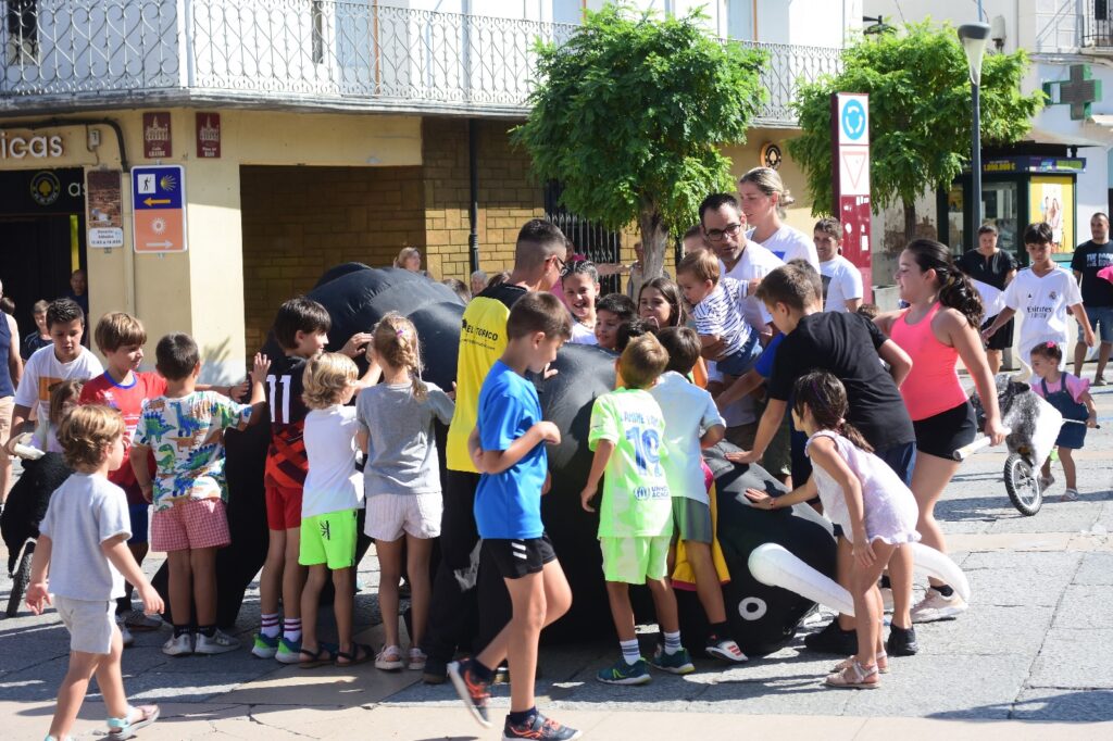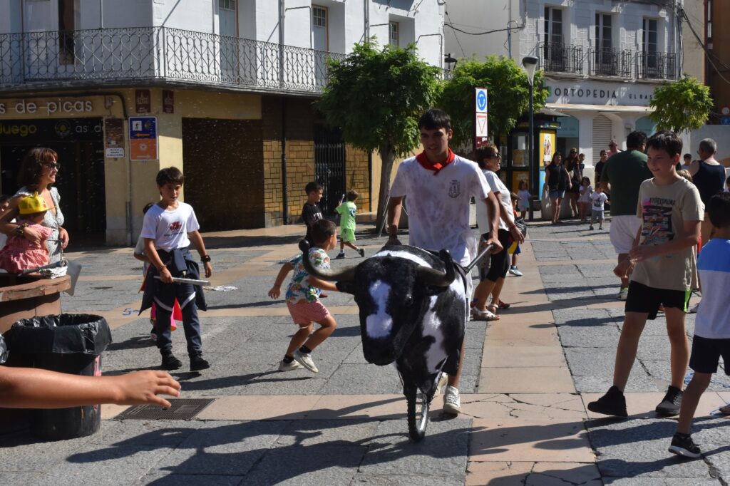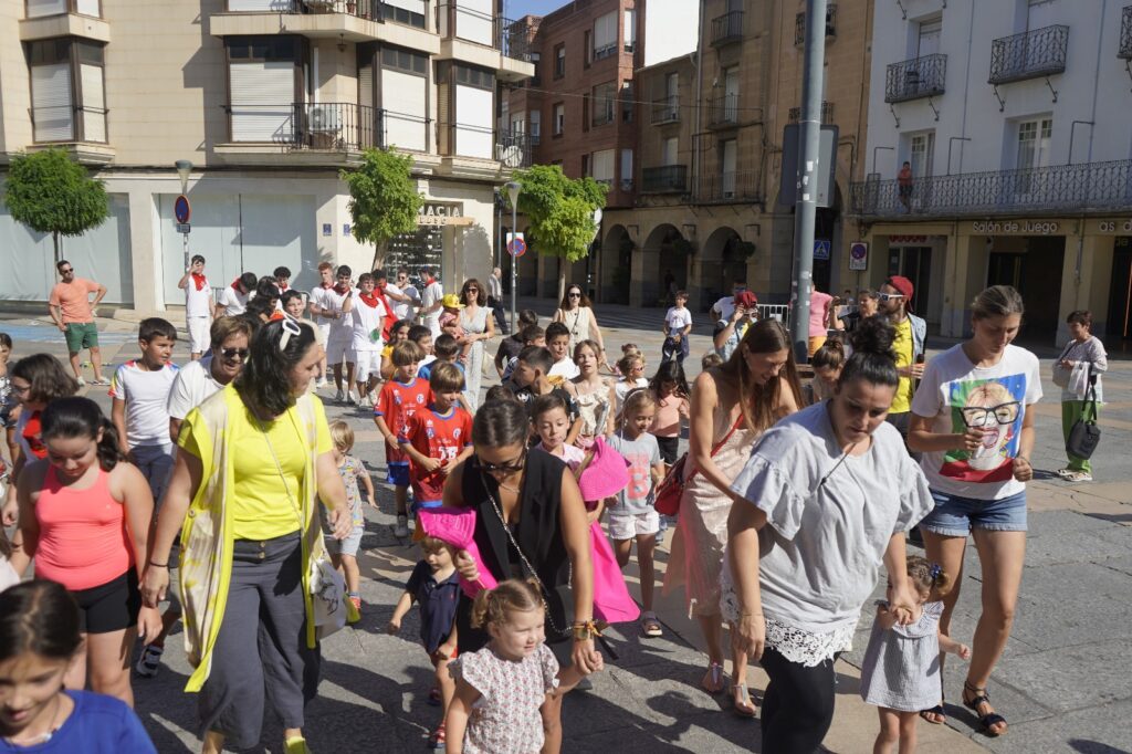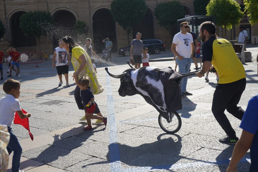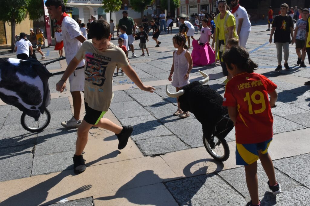 Desde las 10:00 de la mañana, decenas de niños y niñas, vestidos con el típico atuendo blanco y pañuelo rojo, participaron en un recorrido simulado con toros hinchables y cabezudos, recreando el ambiente festivo y taurino de los encierros tradicionales, pero adaptado a su edad y con todas las medidas de seguridad.