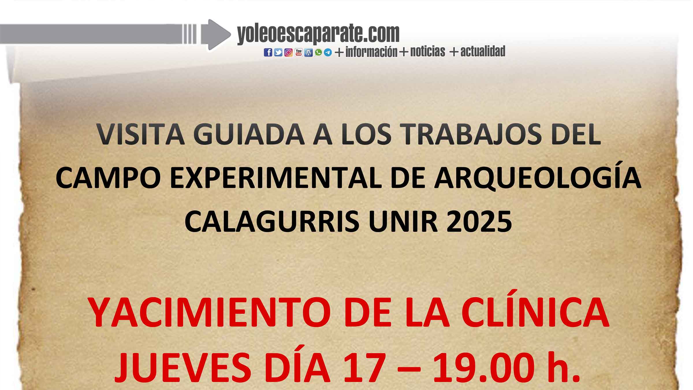 La visita tendrá lugar mañana jueves 17 de julio en el yacimiento de La Clínica a las 19.00 h.