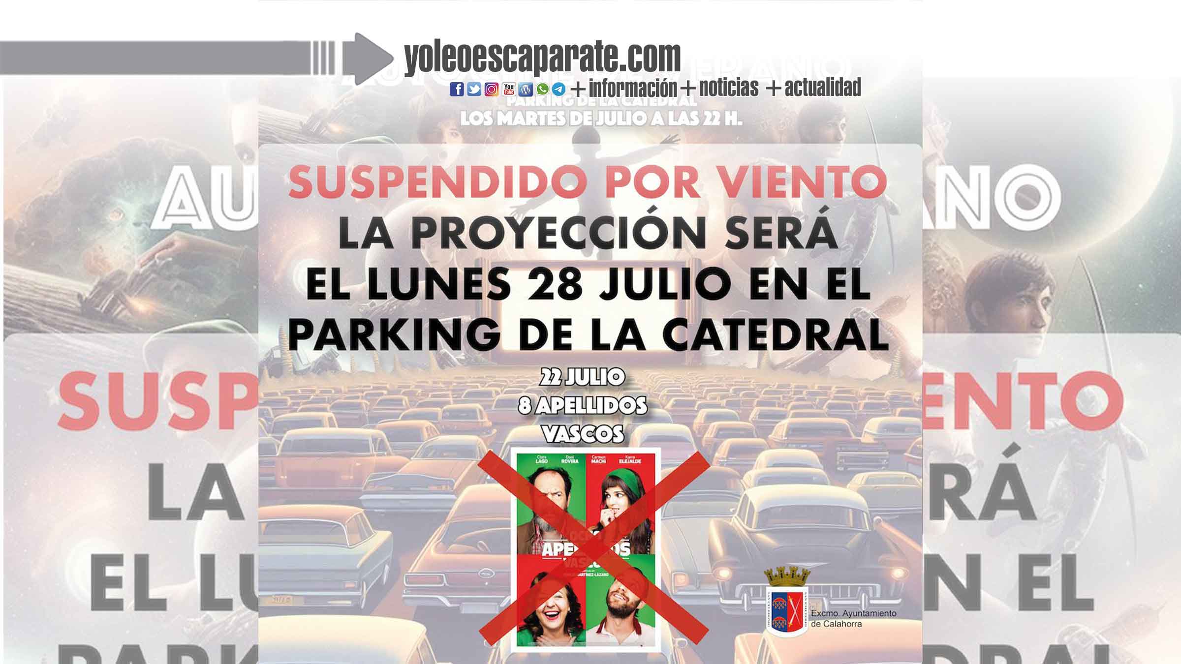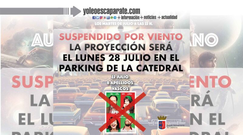 Esta noche estaba previsto la proyección de la película Ocho Apellidos Vascos, que daba continuaba con el ciclo de autocine en el aparcamiento de la Catedral, pero que ante la previsión de viento queda suspendido y la proyección será el próximo lunes 28 de julio.