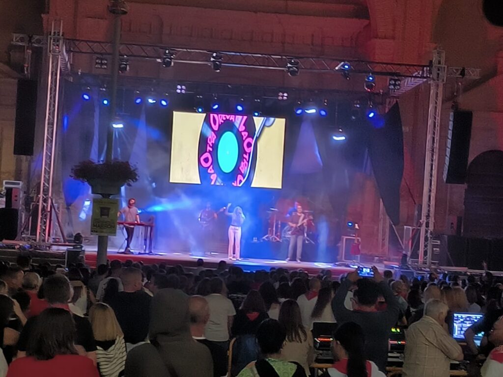 A las 23:00, la Plaza de España acogió la actuación “La Otra Oreja”, un tributo a La Oreja de Van Gogh, que hizo cantar al público con sus grandes éxitos.