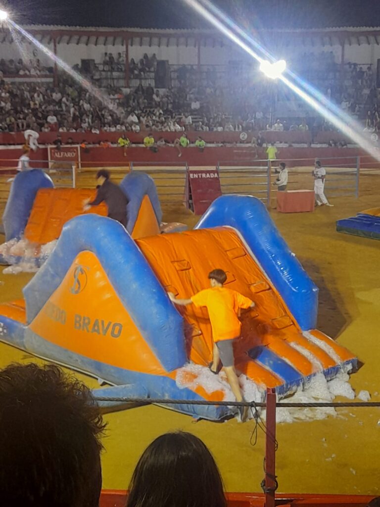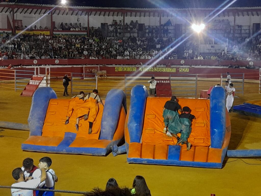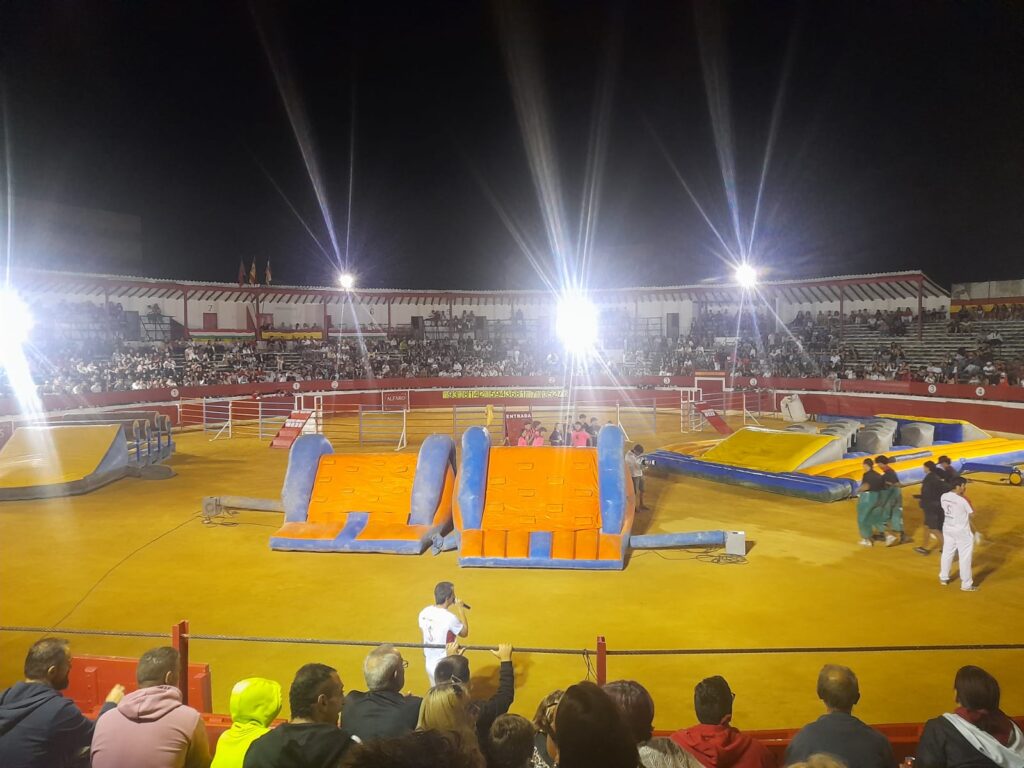 Al finalizar el encierro, PRUEBA en la Plaza de Toros, ESPECTACULO RECORTES CON TANCREDO Y BALANCIN con la Ganadería de TOROPASION.