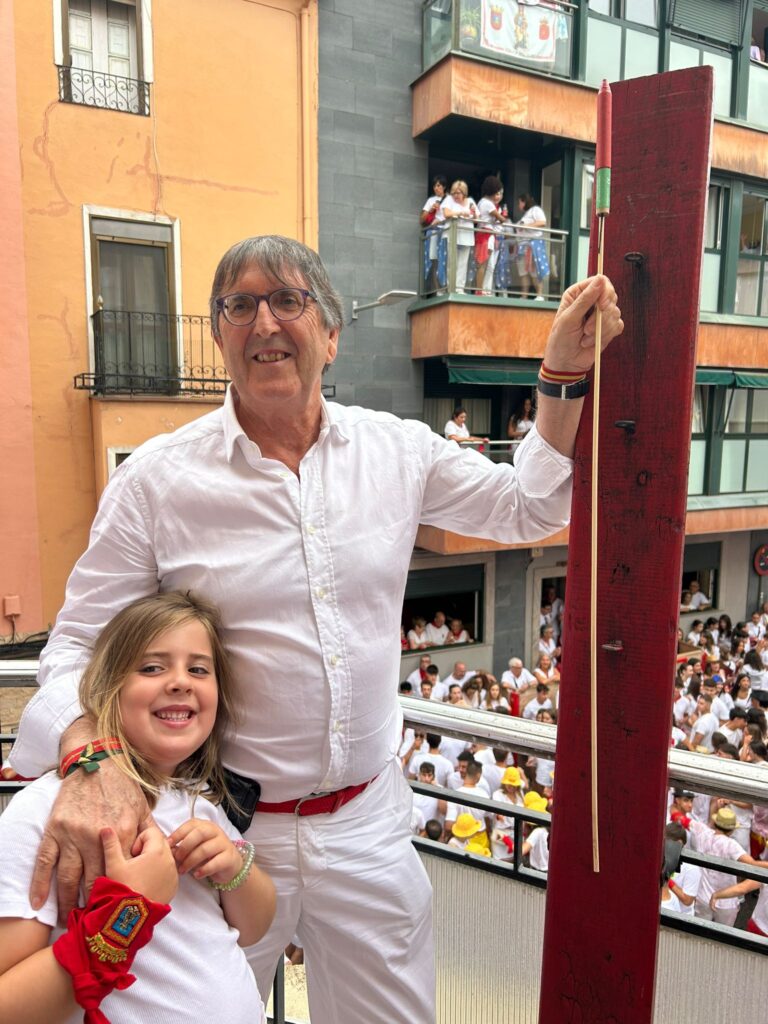 Dianas y pasacalles por la Plaza de los Fueros y despedida de la Comparsa de Gigantes Txikis.