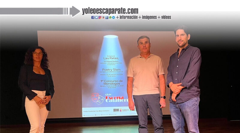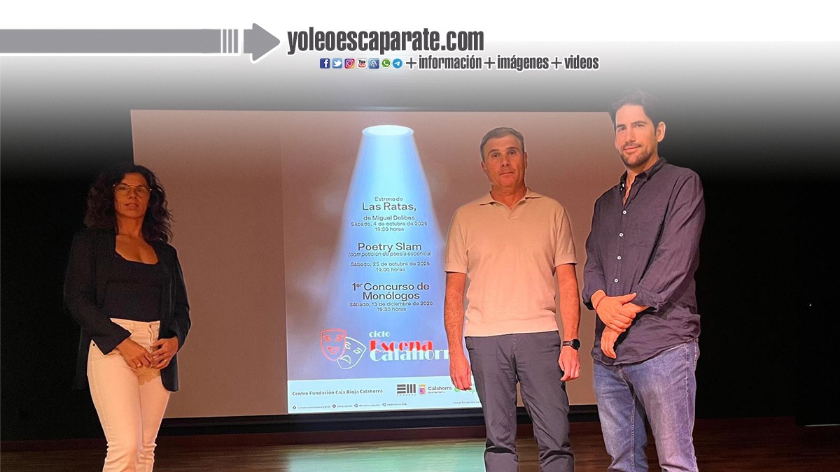 Fundación Caja Rioja ha presentado una nueva programación que llevará a cabo en su Centro de Calahorra este otoño. Se trata del ciclo «Escena Calahorra» formado por una obra de teatro, un concurso de monólogos y un ‘poetry slam‘. Ha sido presentado por el gerente de la entidad, Carlos Fuentes; la concejala de Cultura de Calahorra, Reyes Zapata, y el coordinador del ciclo, Javier Martínez Losa.