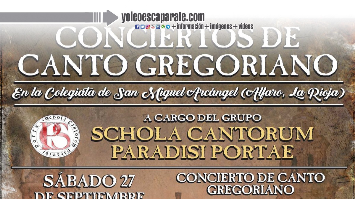 La Colegiata de San Miguel Arcángel de Alfaro (La Rioja) será el escenario de dos citas únicas con el canto gregoriano los días 27 y 28 de septiembre, de la mano del grupo Schola Cantorum Paradisi Portae.