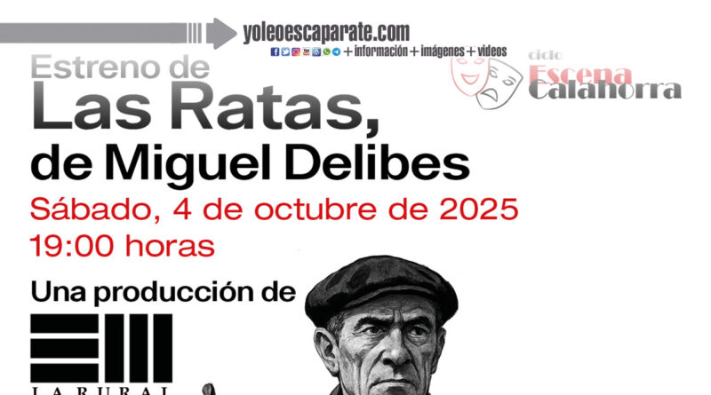 Se trata del estreno de Las ratas, novela de Miguel Delibes que protagoniza en esta ocasión La Rural el sábado 4 de octubre a las 19:30 horas. Publicada por primera vez en enero de 1962, narra la vida en un pequeño pueblo de la España rural, apartado de cualquier capital y notablemente más atrasado.