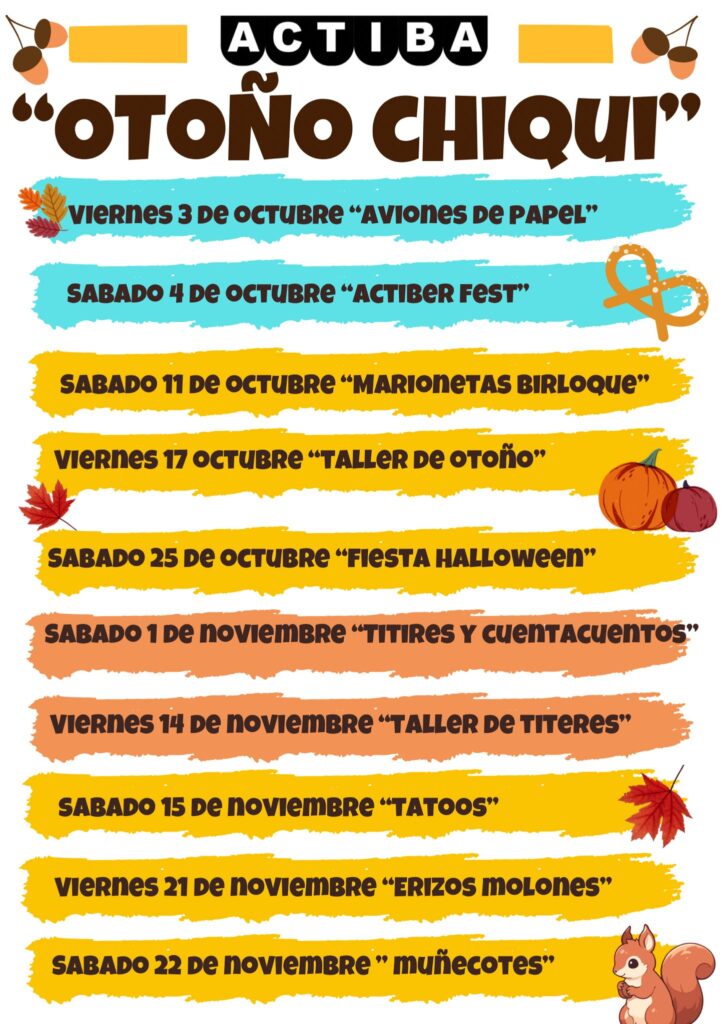 Las actividades continuarán con un taller de manualidades otoñales en fieltro (viernes 17), la Fiesta de Halloween (sábado 25) con concurso de disfraces, pintacaras y chocolatada, y sesiones de títeres y cuentacuentos (sábado 1 de noviembre), organizadas en colaboración con el programa de integración social del Ayuntamiento.