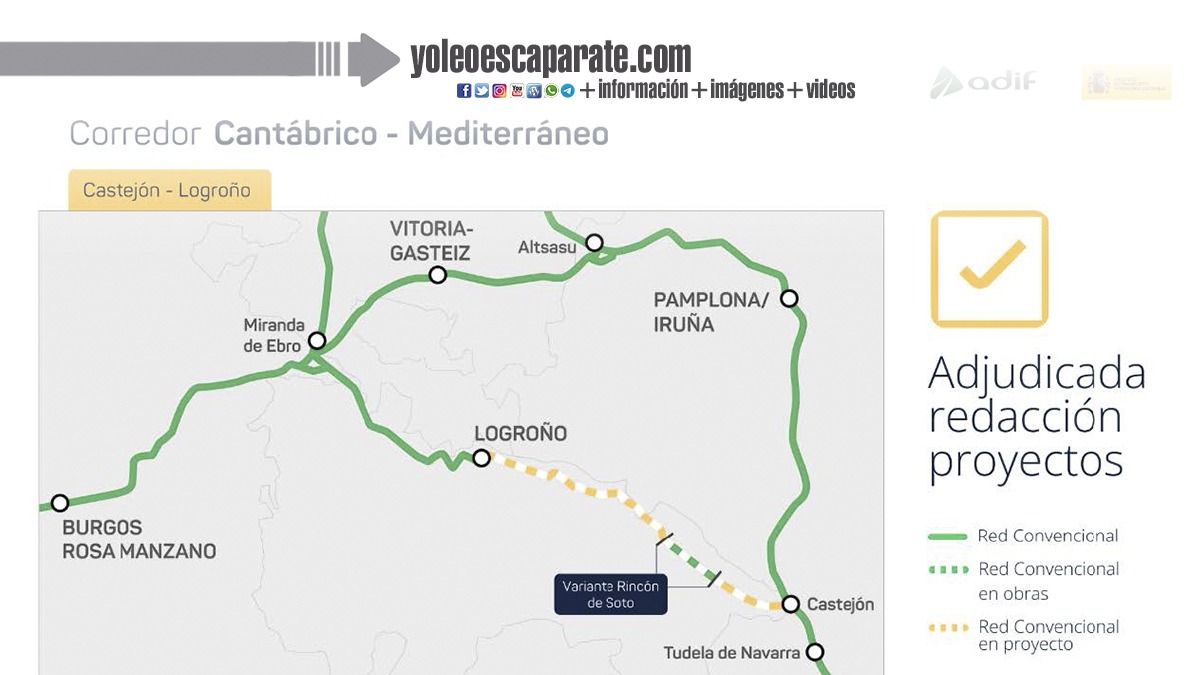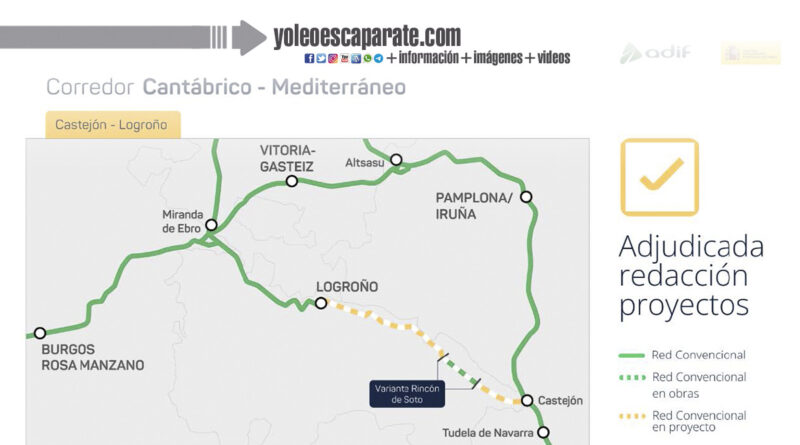 El Ministerio de Transportes y Movilidad Sostenible ha adjudicado por 14,6 millones de euros (IVA incluido), a través de Adif, la redacción de los proyectos de construcción y renovación del tramo Castejón-Logroño del Corredor Cantábrico-Mediterráneo, a su paso por La Rioja.